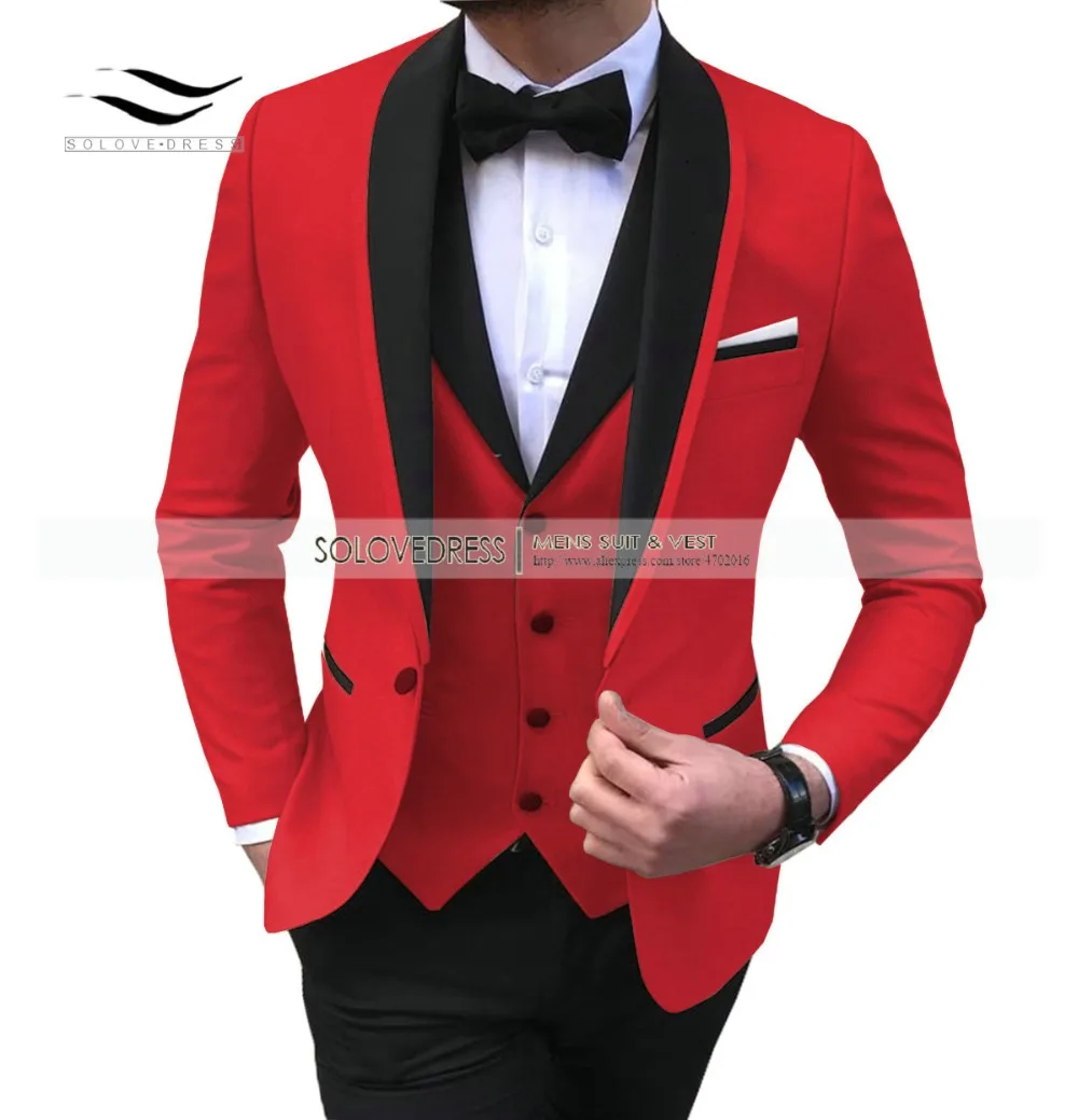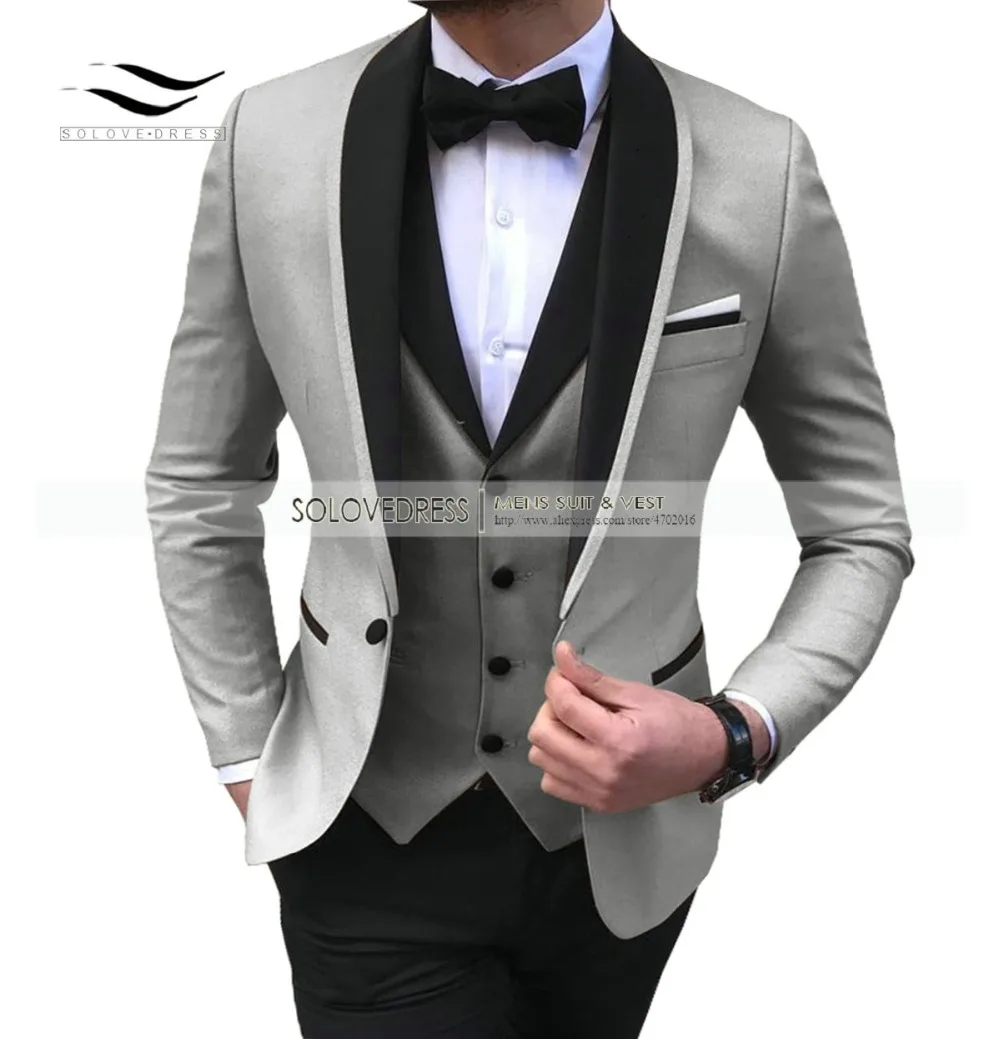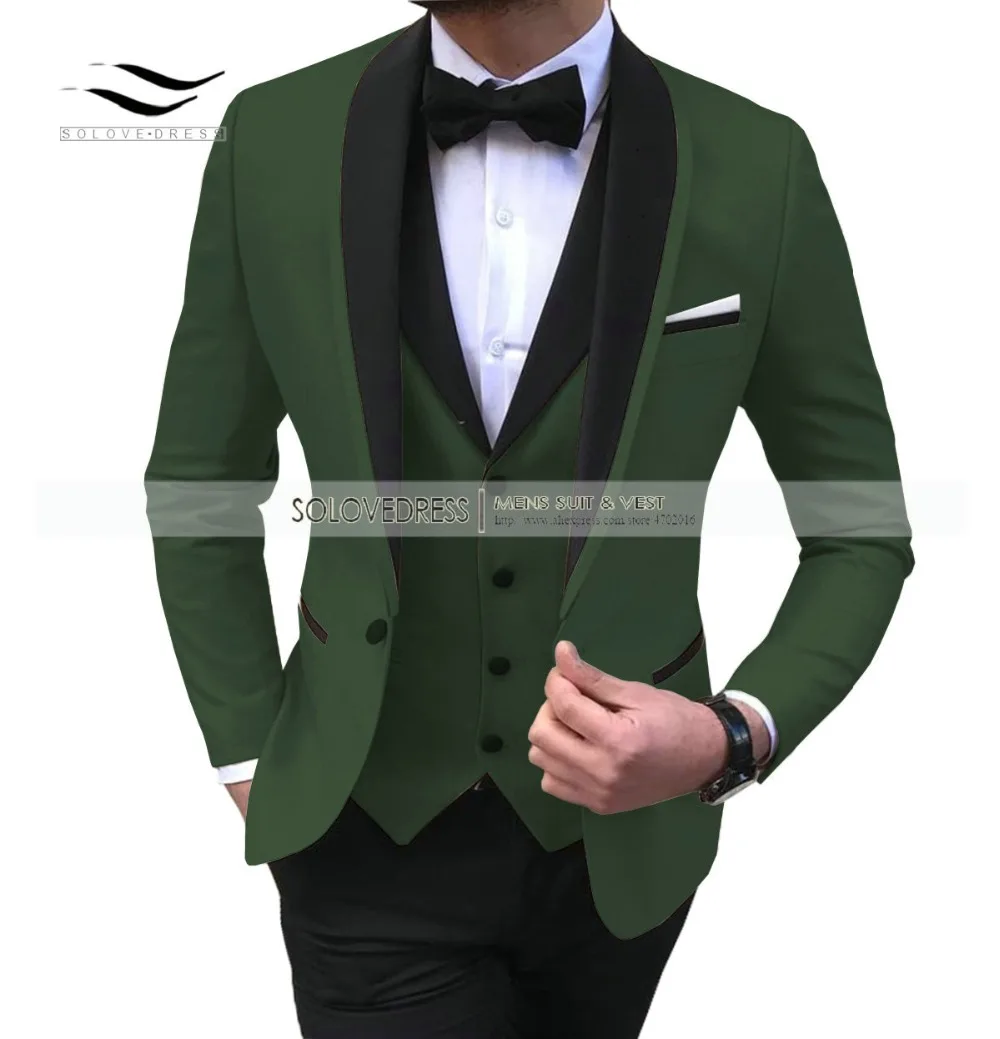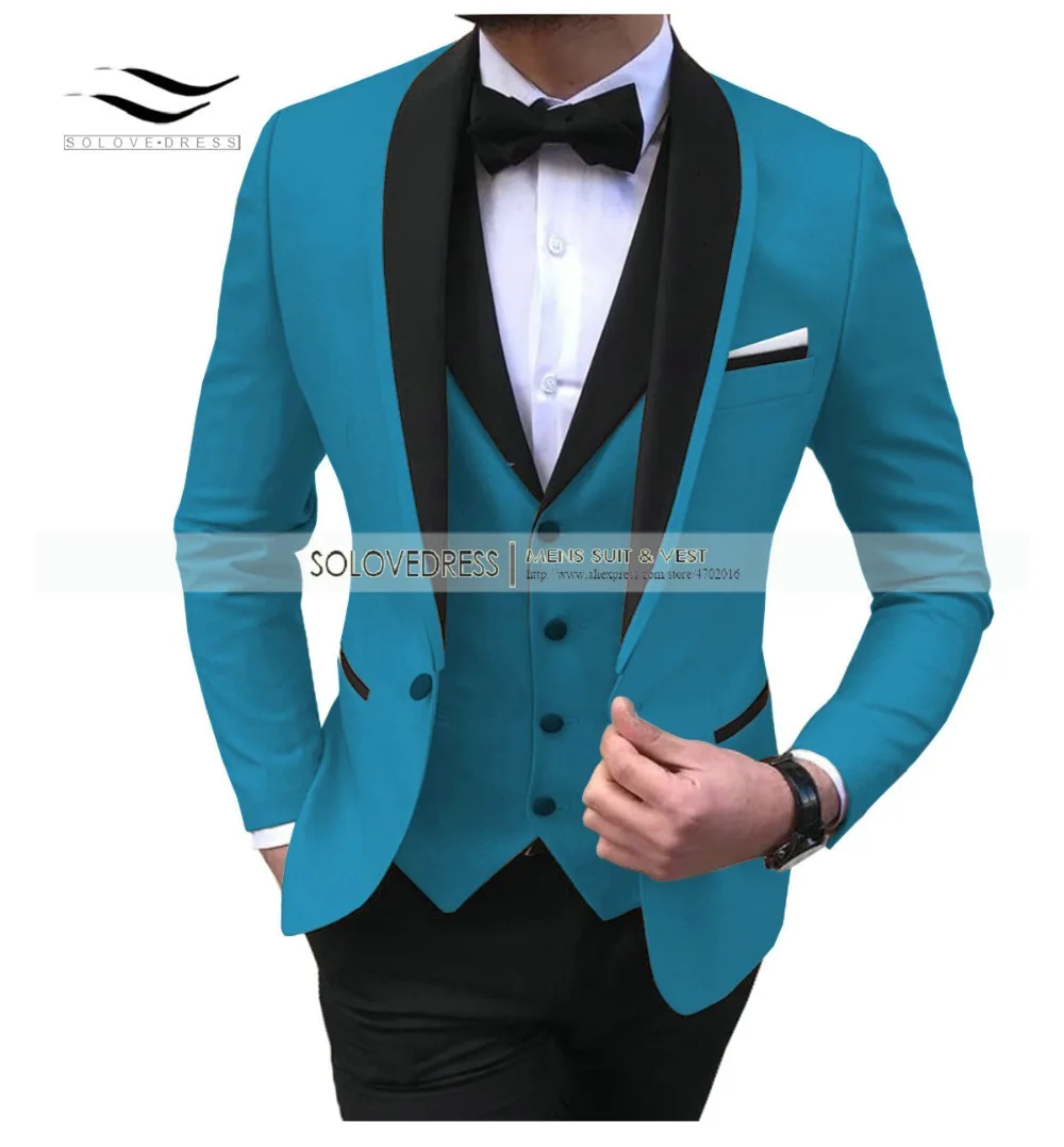 Мужские бежевые повседневные облегающие смокинги для выпускного вечера ярко-синие зеленые серые деловые белые костюмы с лацканами для выпускного вечера (Блейзер + брюки + жилет)