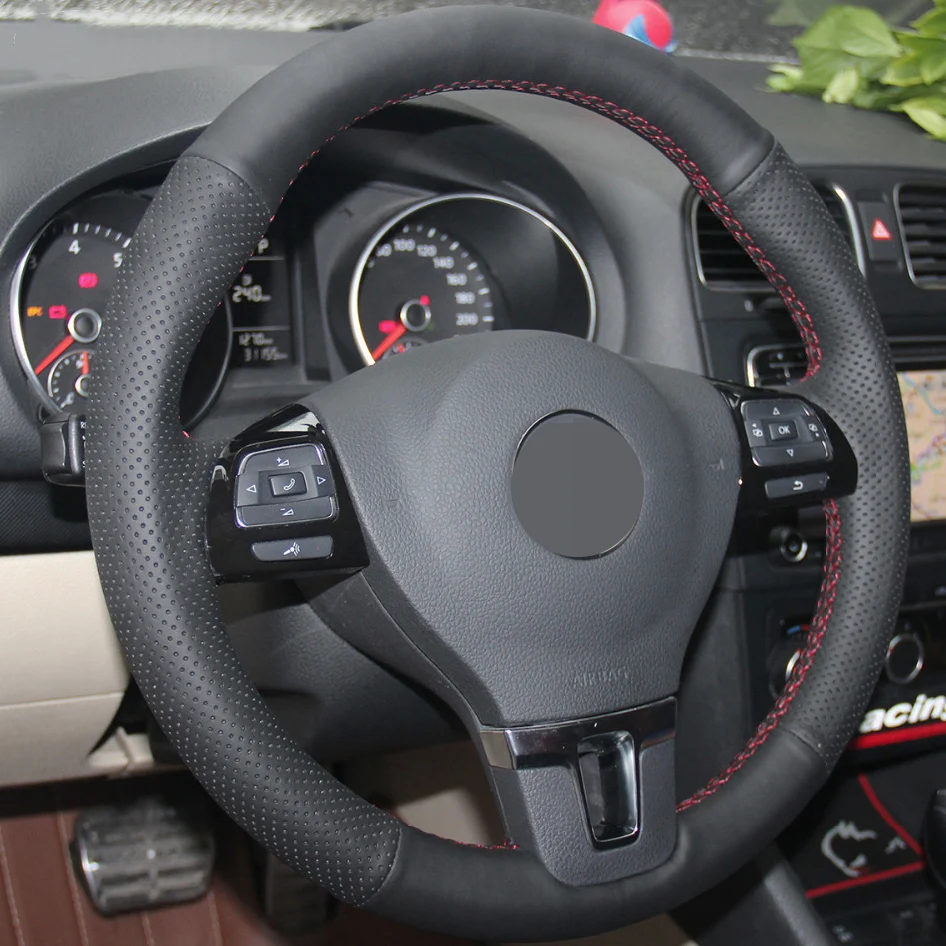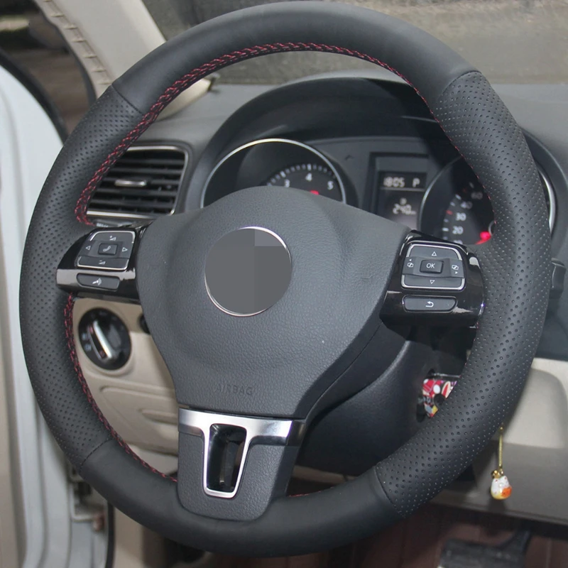 Чехол на руль из натуральной кожи, черный, Ручное шитье, для Volkswagen Golf 6, Mk6, Jetta 6, Polo 2011-2014