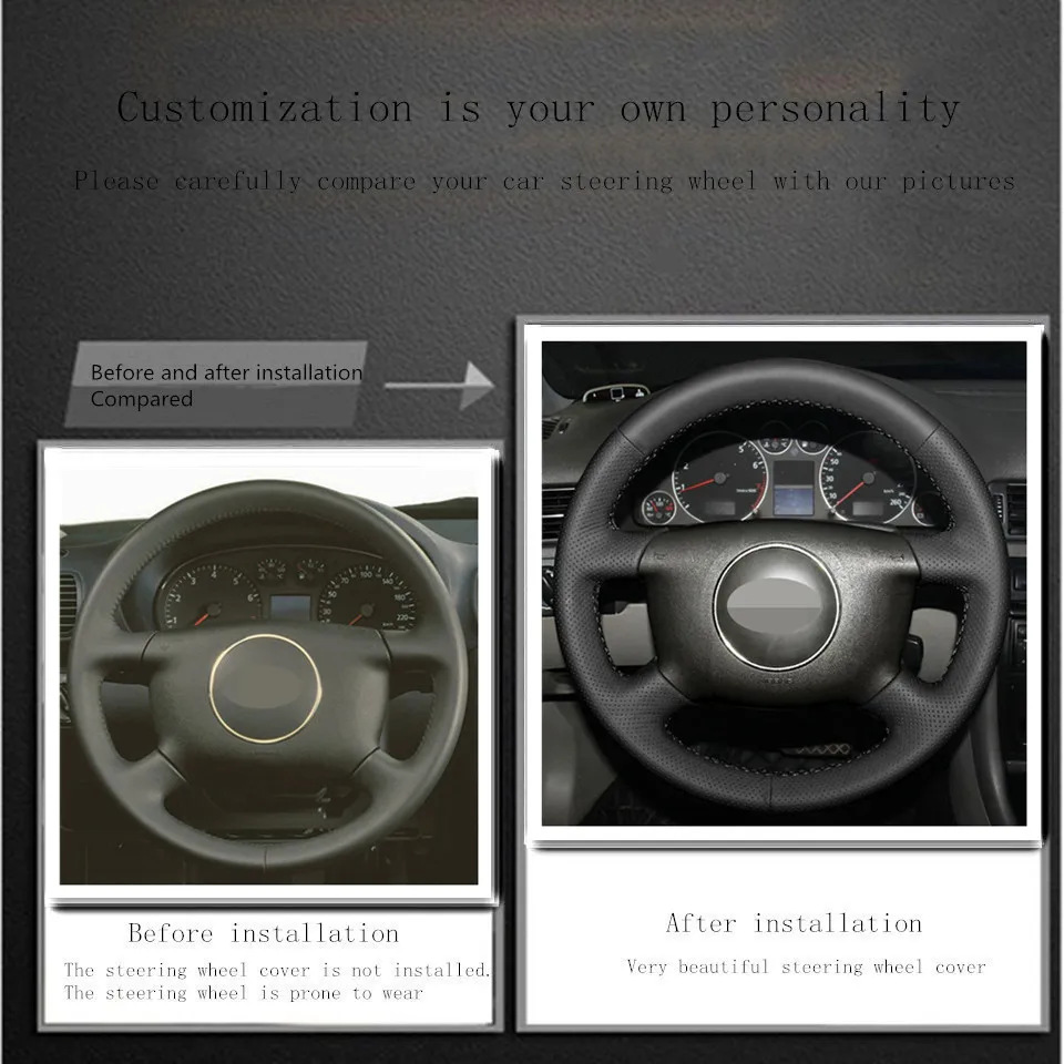 Пожалуйста, проверьте и сравните свой Автомобильный руль с рулем на картинке перед покупкой. (наши чехлы на руль-это индивидуальный продукт, если есть какие-либо различия, они не подойдут)! Этот продукт является рулевой крышкой, а не рулем! Этот продукт подходит для Audi A8 (D2) S4 A6 (C5) Audi A2 (8Z) A3 (8L) A4 (B5 B6) и других моделей.
