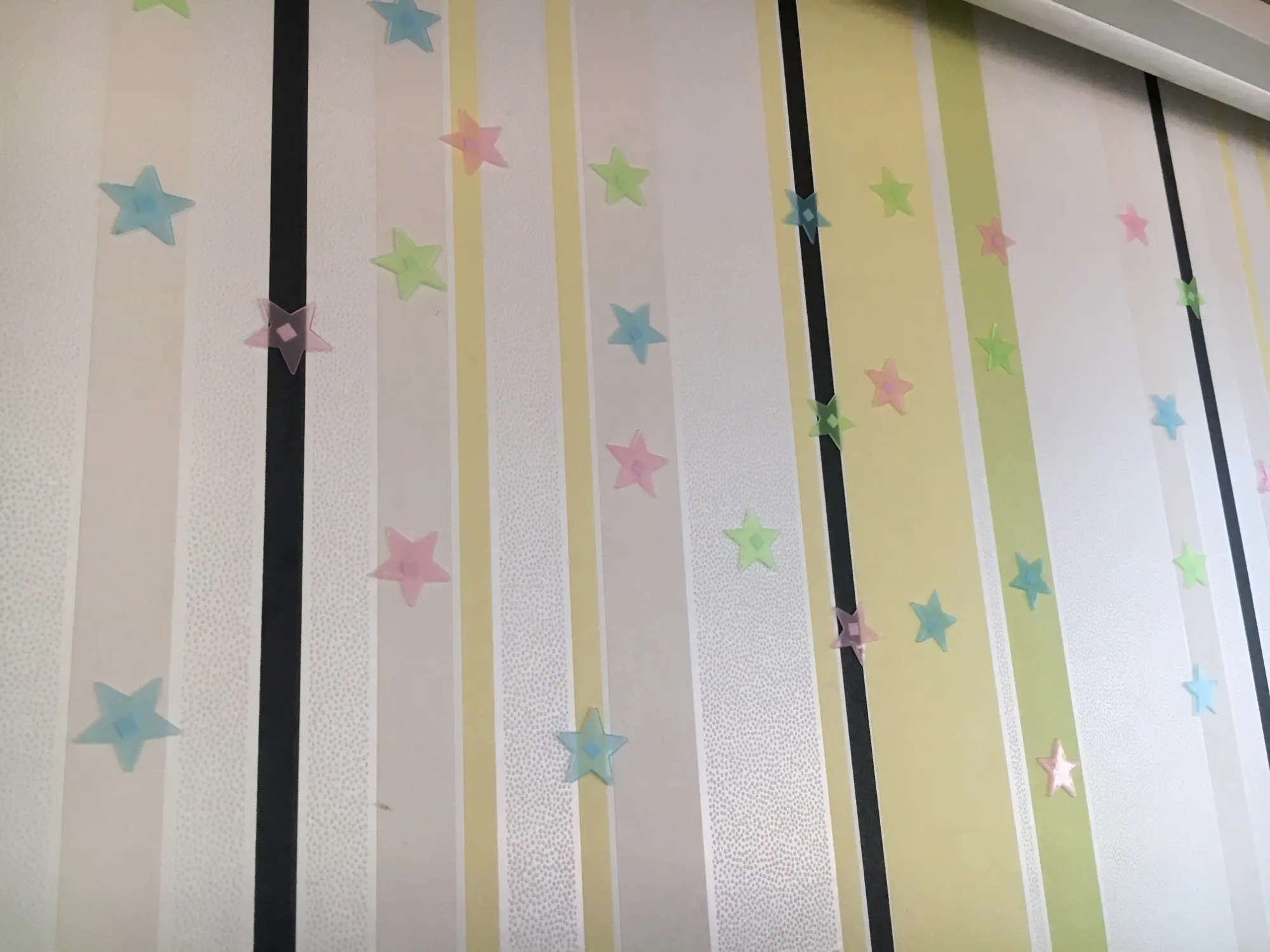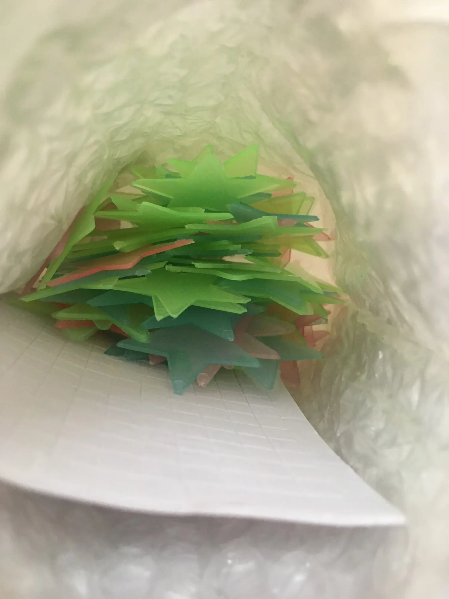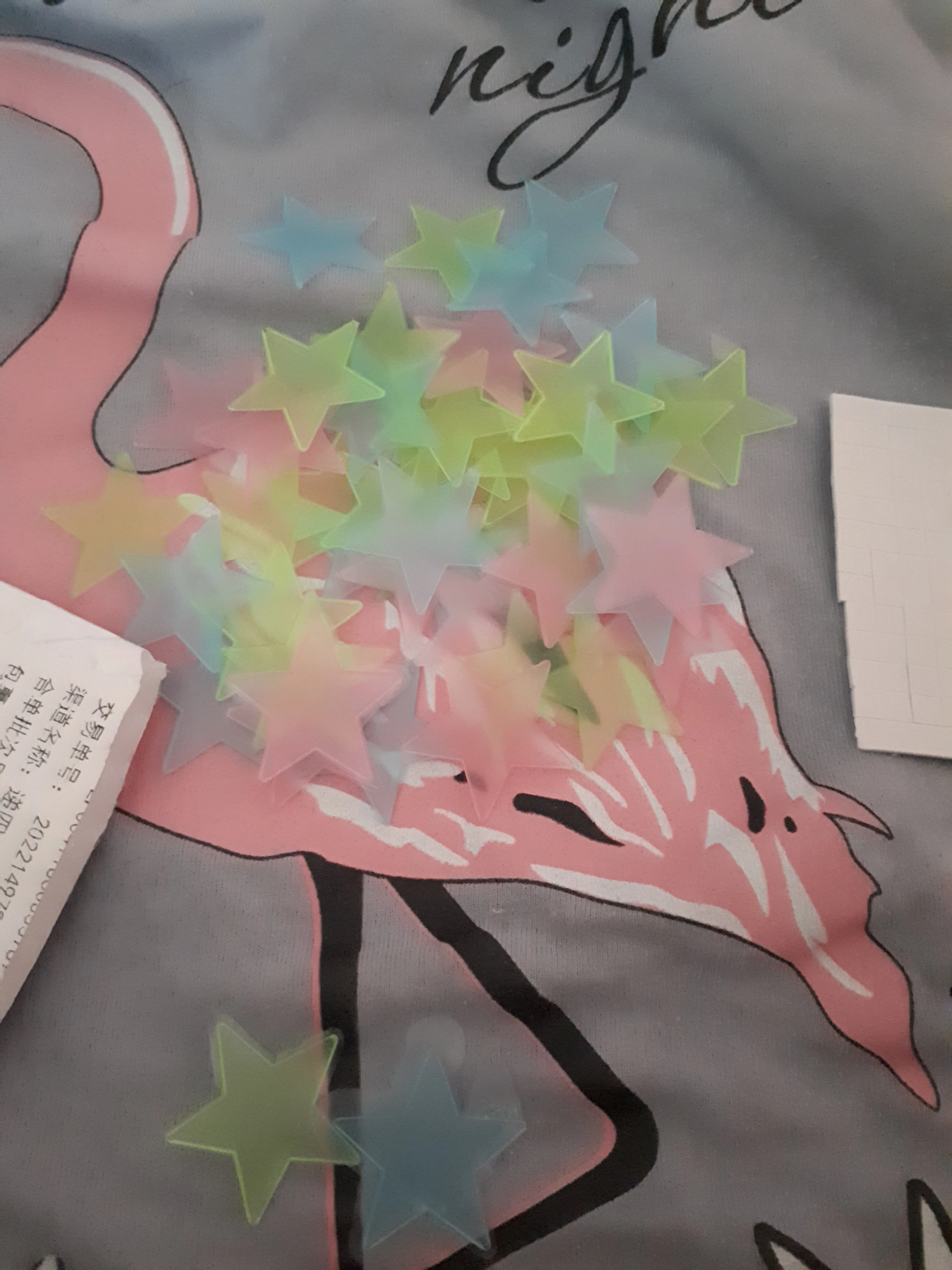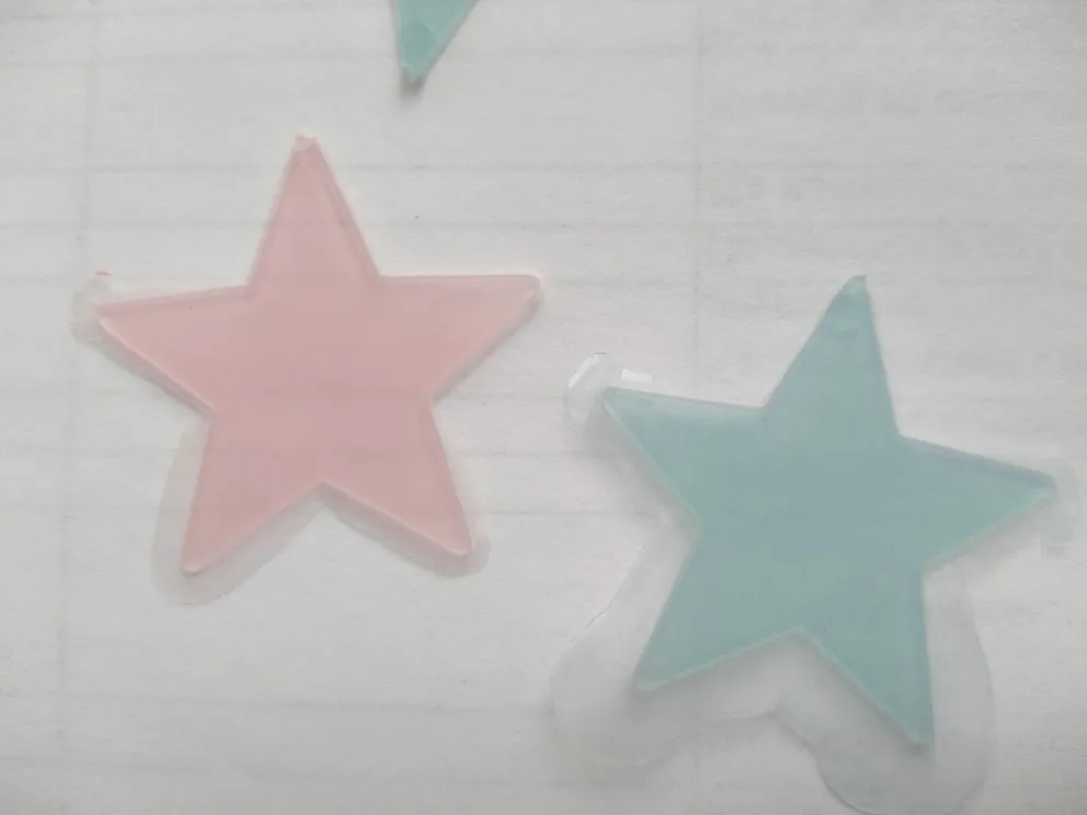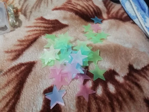 звёздочки просто супер. полупрозрачные и небольшие. пришло 53 штуки и совственно те самые липучки для них некоторые немного дефектные но это легко обрезать