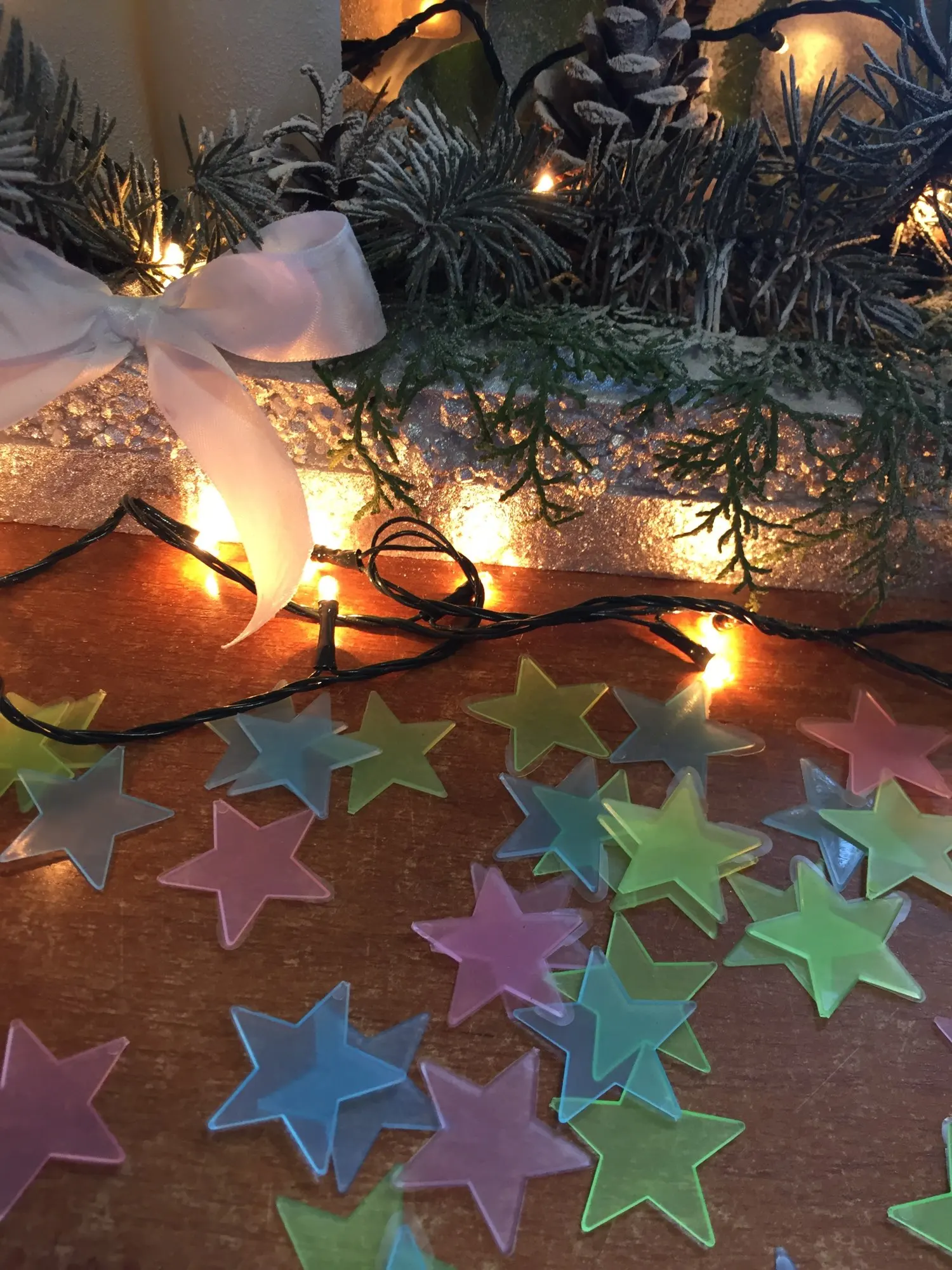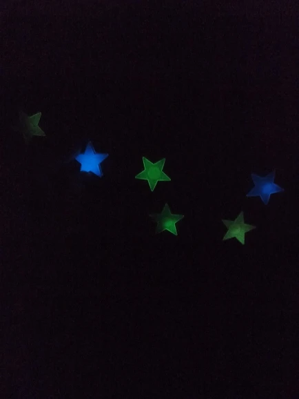 звёздочки совсем малышки! не более 3 см. об их размере не было сказано в описании. в целом, заказом довольна, они действительно светят, но не засекала, насколько долго. те, что ярче - зелёные. прислали 30 зелёных, 13 голубых и 14 розовых (итого 57))
