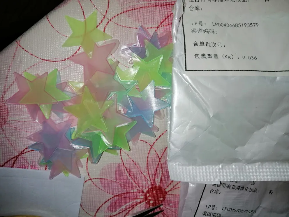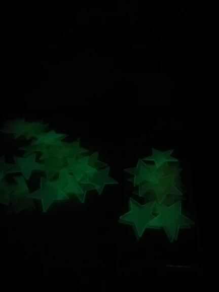 Заказывала 02.10.20 пришли 03.11.20 в Липецк с ещё одной посылкой в пакете. Звездочек была 51 штука, плюс много штучек для наклейки звездочек на поверхность. Заряжаются от света. Светят очень хорошо и ярко, но на моей камере, к сожалению, не видно или видно плохо. Сколько так светят по времени не проверяла. Звёздочки маленькие, разных цветов. Ничуть не пожалела о заказанном товаре, очень понравился, рекомендую.)
