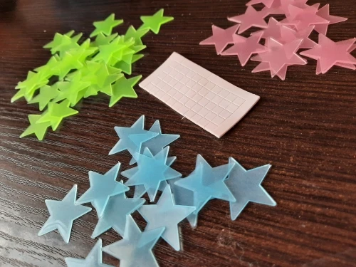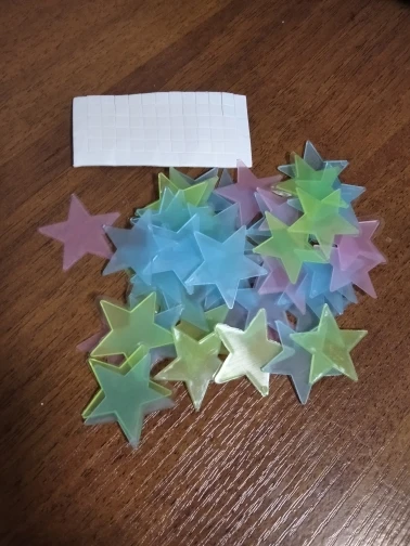 Звёздочки клёвые, была клейкая лента внутри упаковки, ещё не пробовала в темноте, пришла посылка за неделю