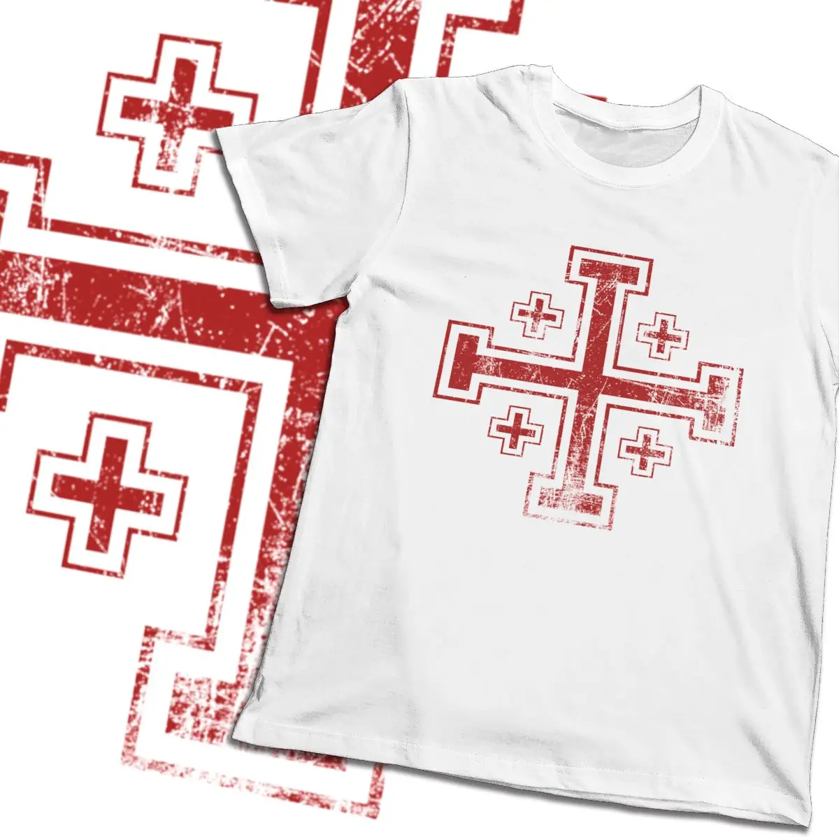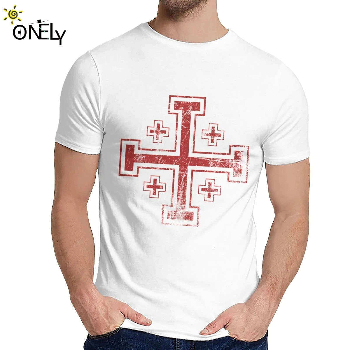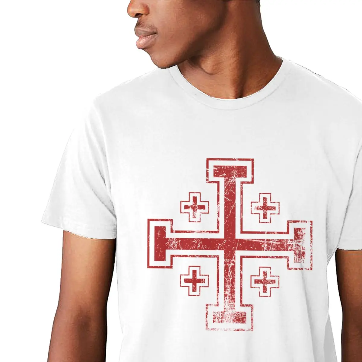 Crewneck Crusader Cross Иерусалима футболка тамплиеров короткий рукав графический принт человек из мягкой кожи в интернет-магазине La Camiseta большой Размеры