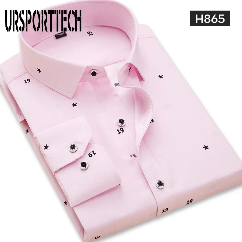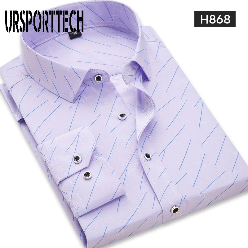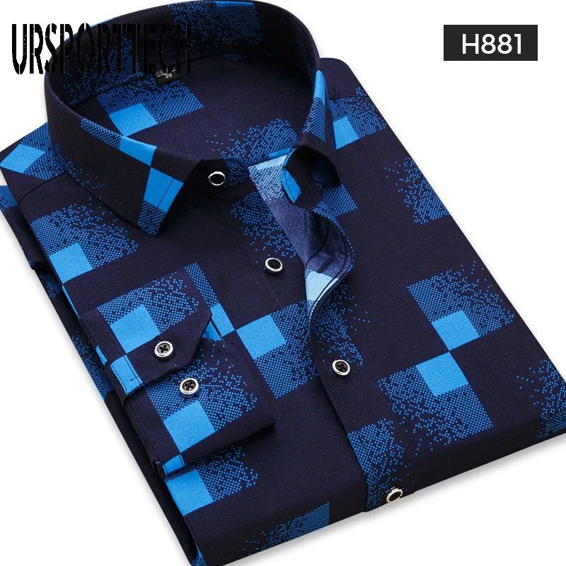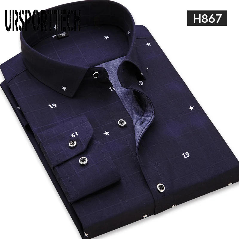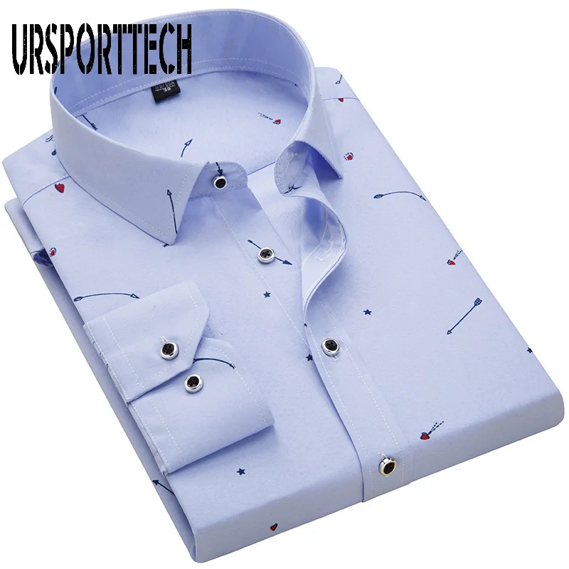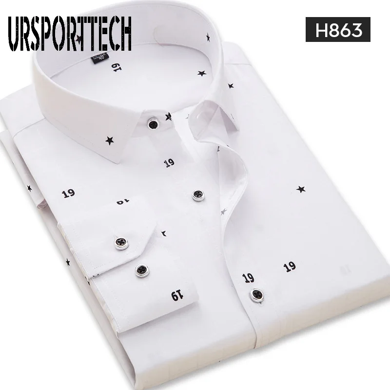 Мужская рубашка URSPORTTECH, облегающая Повседневная рубашка с длинным рукавом и принтом, 2020