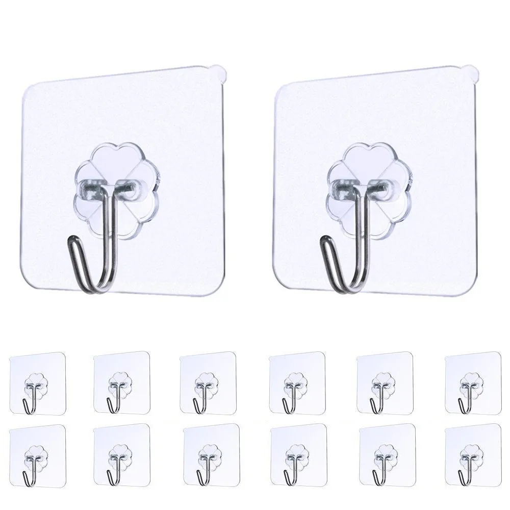 Набор из 12 многофункциональных крючков без сверления прозрачный, самоклеящийся, многоразовый, водонепроницаемый, маслостойкий, не оставляет следов на удалении