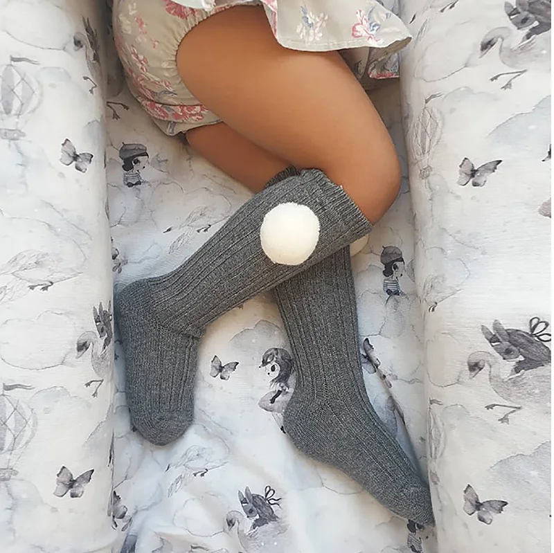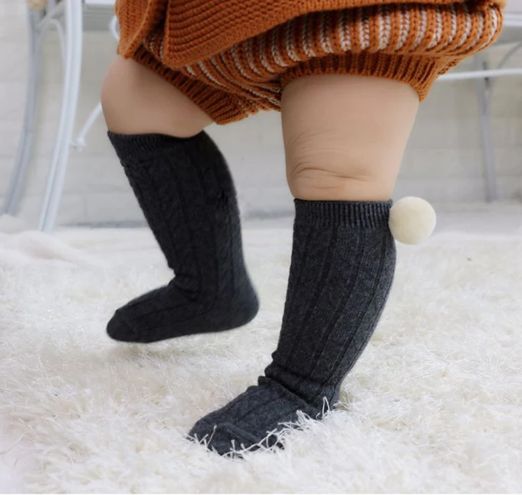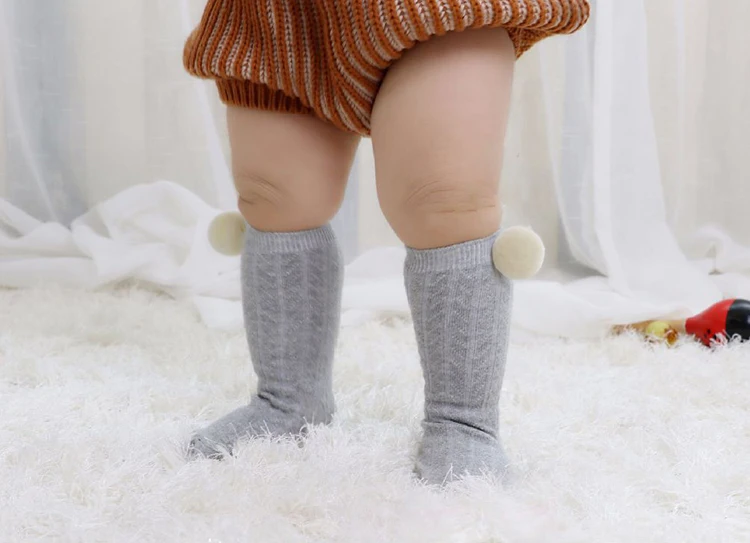 4 Цвета. Детские толстовки с капюшоном с меховыми шариками, гольфы. Для ребенка ясельного возраста, носки без пятки для мальчиков и девочек. Детские Pom трикотажные носки От 0 до 6 лет