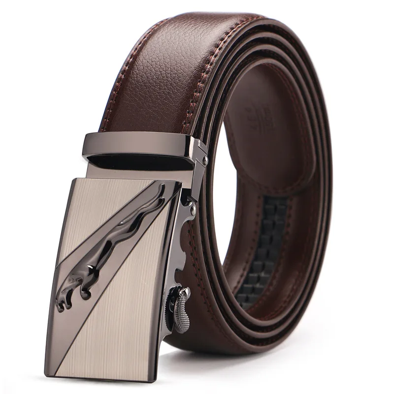 Ремень мужской кожаный с автоматической пряжкой, коричневый