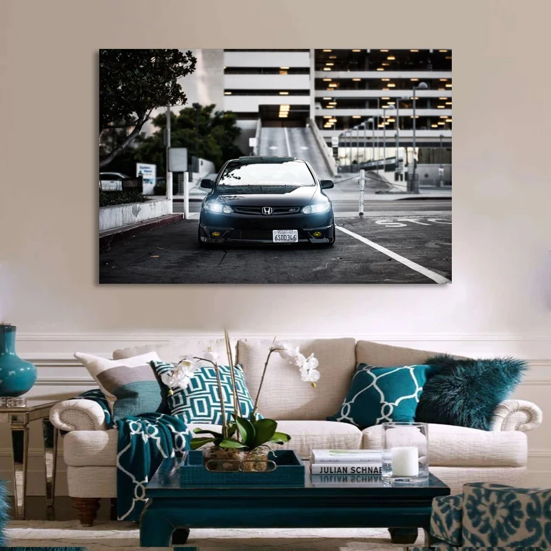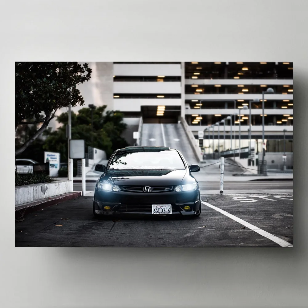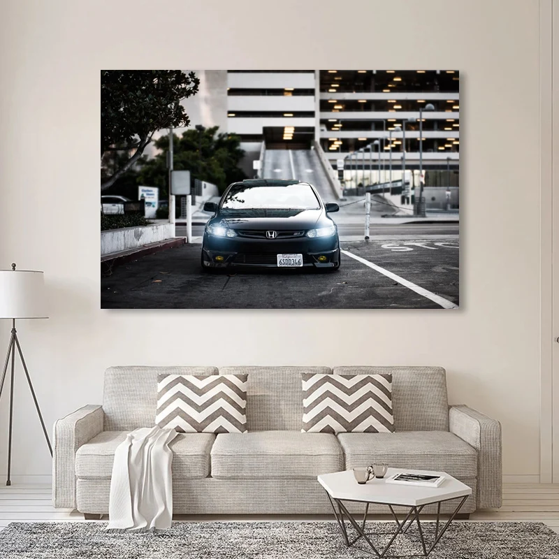 Картины на холсте Honda-CIVIC Si, черная Автомобильная фара, вид спереди, Современная Настенная картина, плакаты, HD печать для декора гостиной