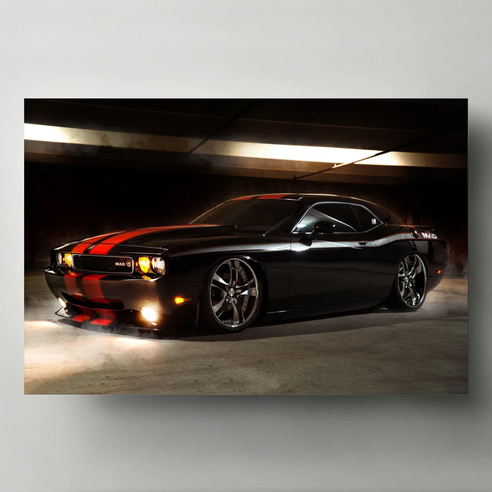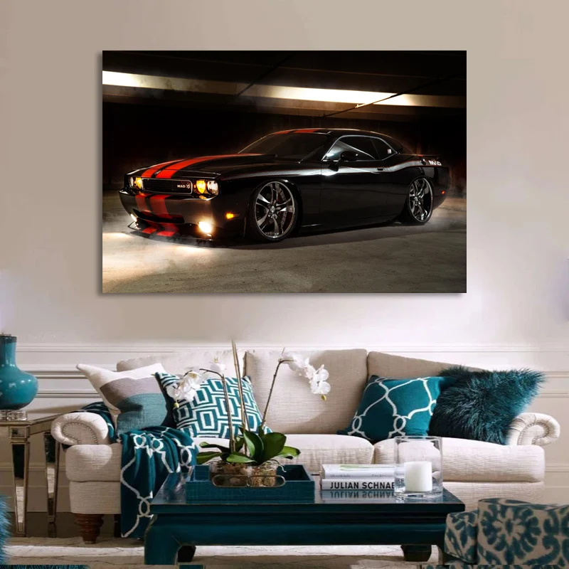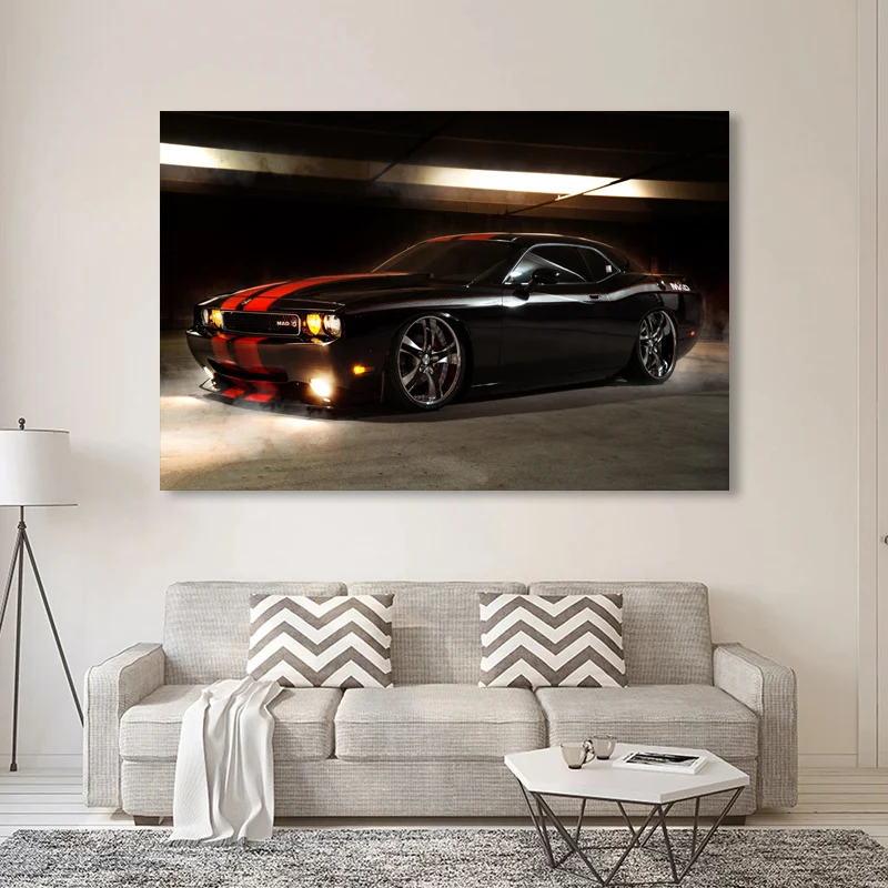 Картины на холсте черный Додж Челленджер с красными полосками автомобиль Современные настенные картины плакаты HD печать для декора гостиной