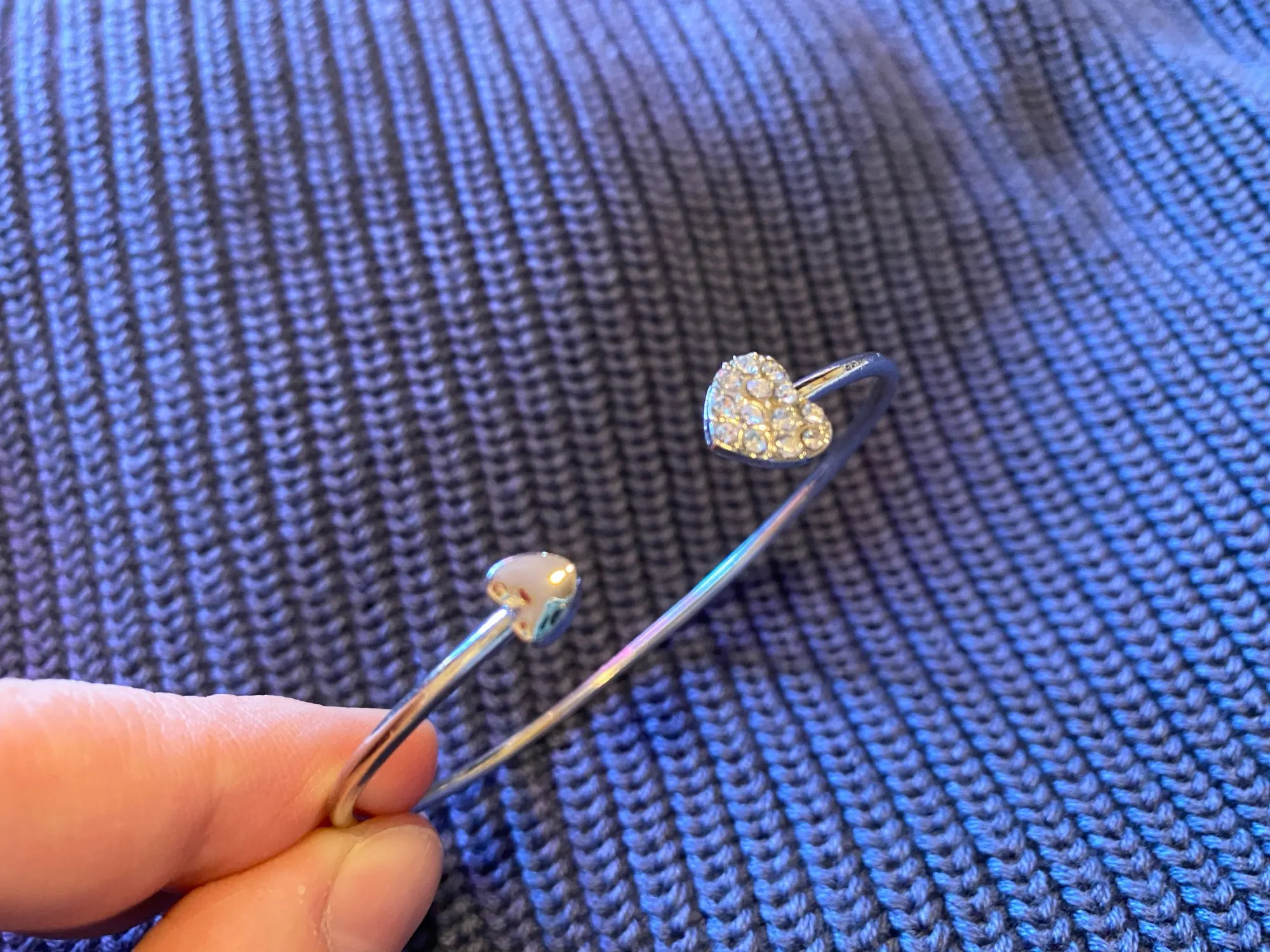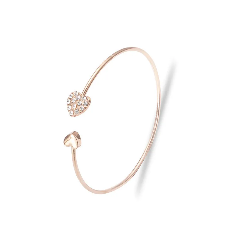 Браслет-манжета Woozu Женский, регулируемый, с кристаллами, двойным сердцем, бантом, 2019