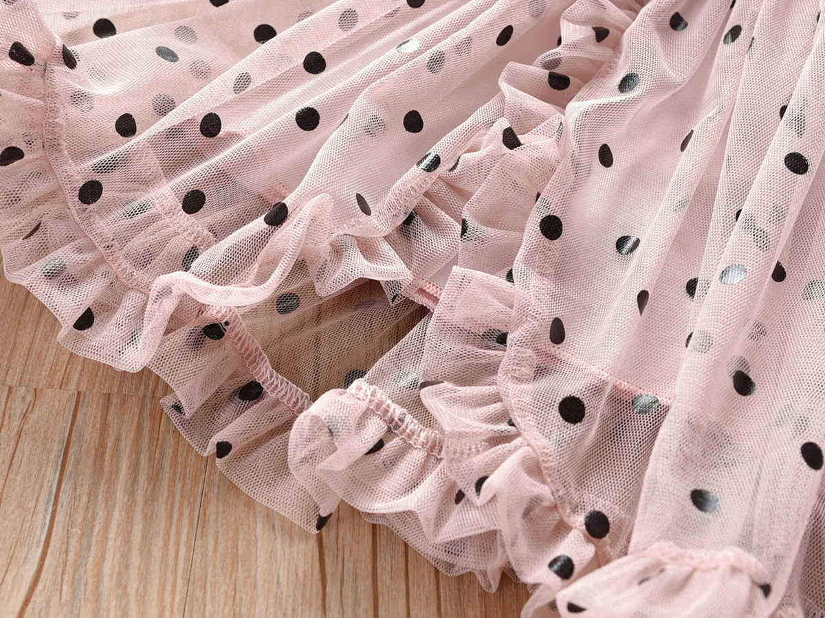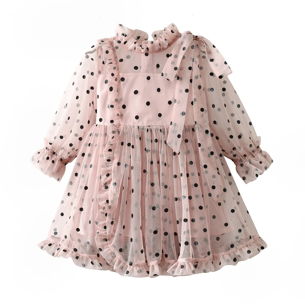 Детское Сетчатое платье с длинным рукавом, в горошек