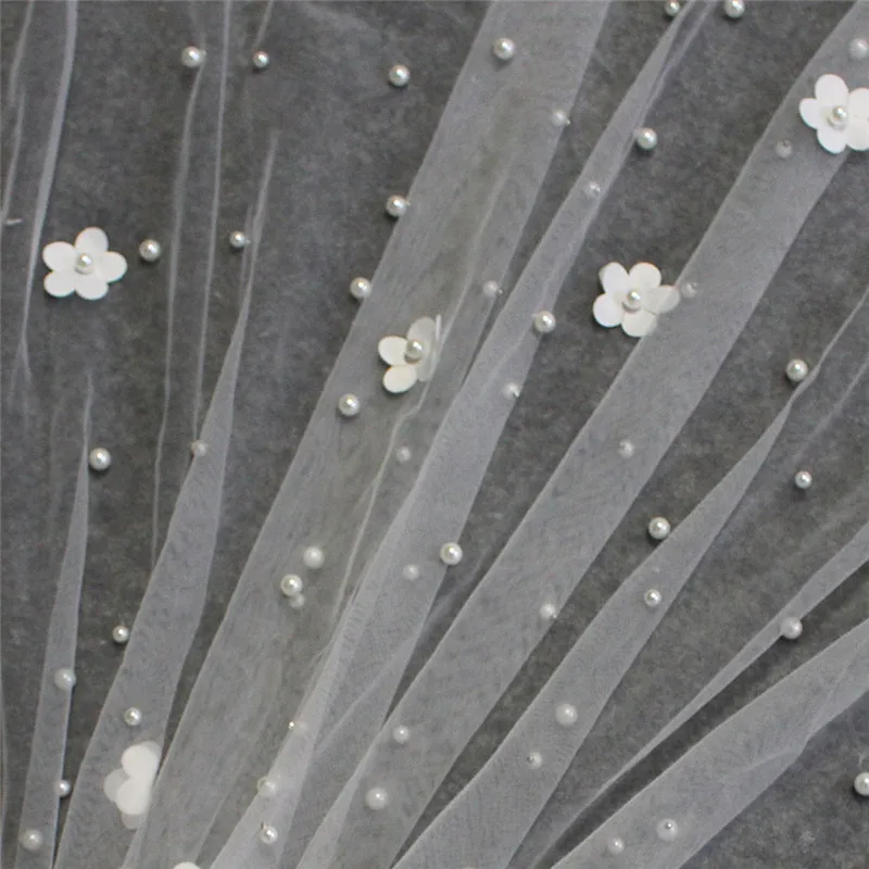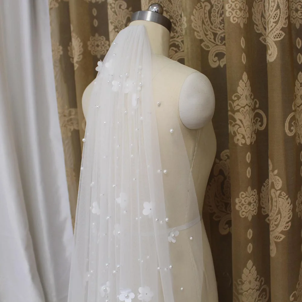 Свадебные накидки с жемчугом, длина 3 метра, Белыйцвет слоновой кос...