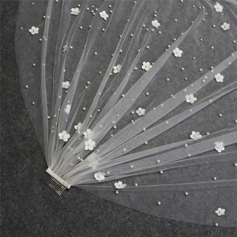 Фата свадебная с жемчугом, Элегантная короткая Однослойная с гребне...
