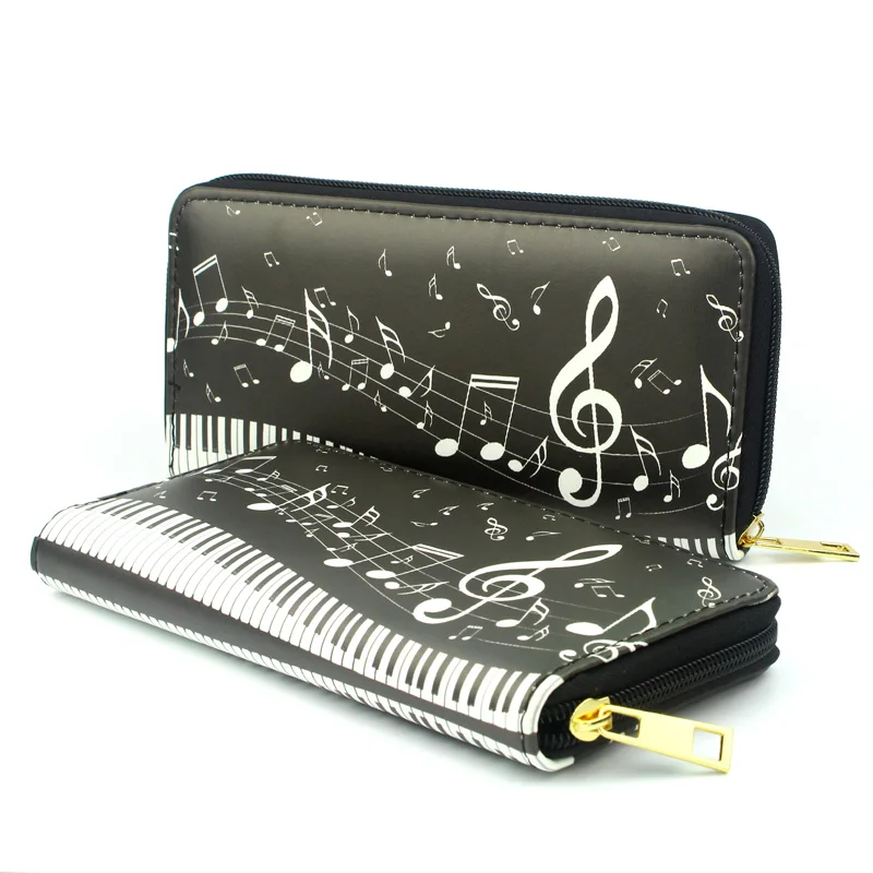 Женские кошельки, Дамский клатч на молнии, кошелек с отделением для карт, женский кошелек, кошелек для монет, бумажник, с музыкальными нотами для фортепиано