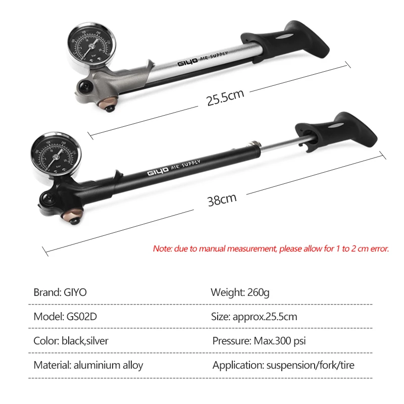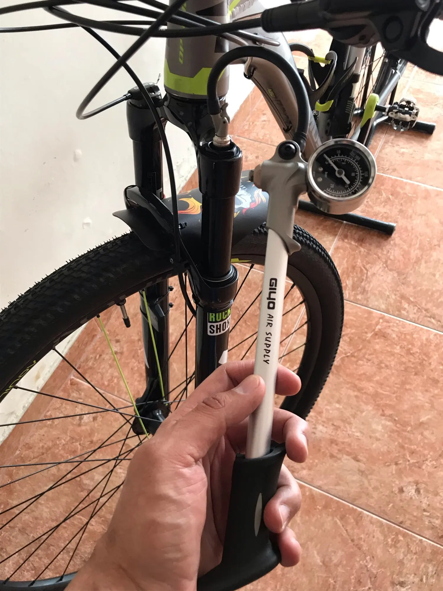 Насос Пневматический GIYO GS-02D, складной, подвесной горный велосипед фунтов на квадратный дюйм, с рычагом и манометром для вилки и задней части велосипеда