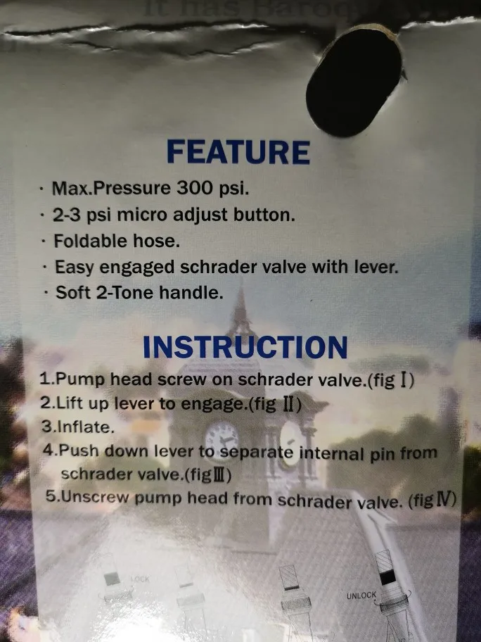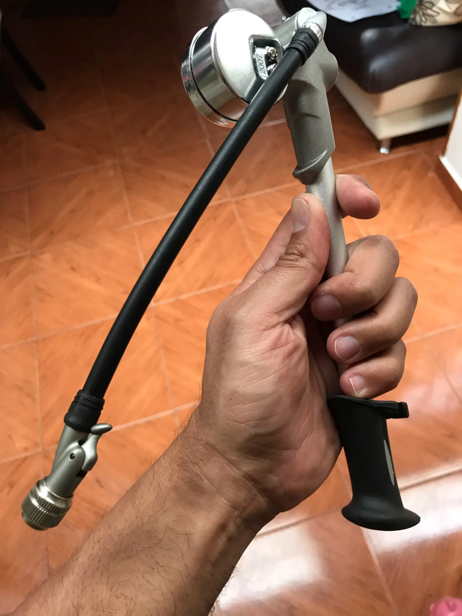 Насос пришёл в отличной упаковке, сразу проверил как работает и качнул вилку, качество очень крутое, металлический корпус, резиновый шланг который вращаеться, фиксатор открытия клапана отдельный, манометр работает отлично, сброс лишнего воздуха работает очень четко.