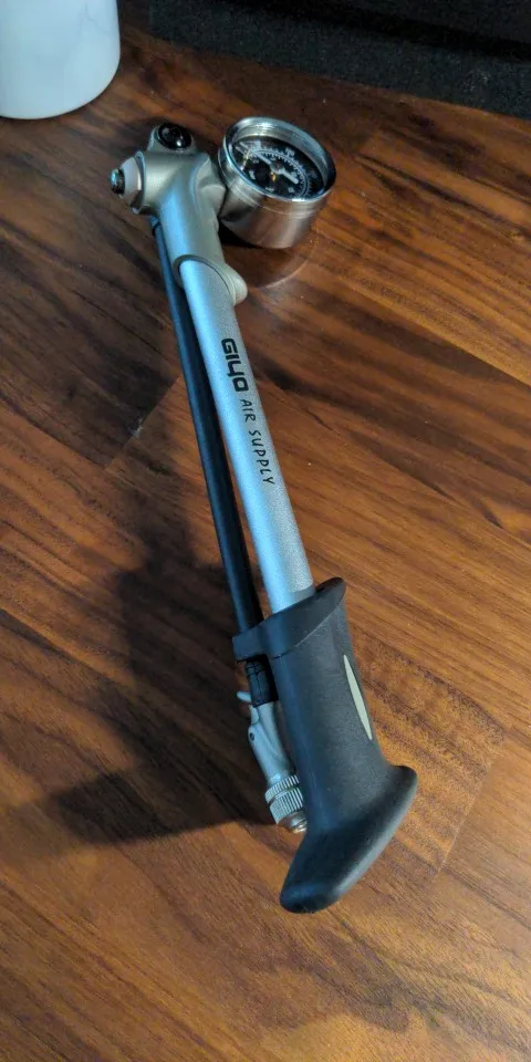Быстрая доставка. Насос соответствует описанию. Сразу капнул 5 капель масла внутрь на всякий случай, китайцы любят экономить на смазке. Попробовал качать вилку, отлично справился. накачал 220 psi, больше для моего веса не надо. Рекомендую!