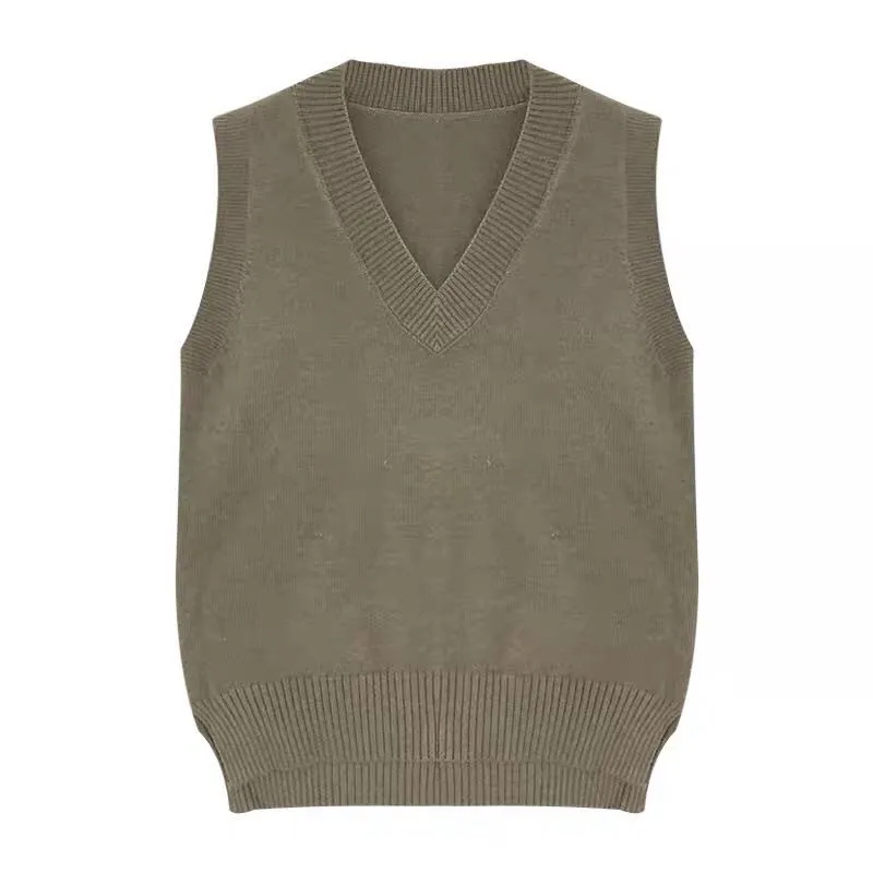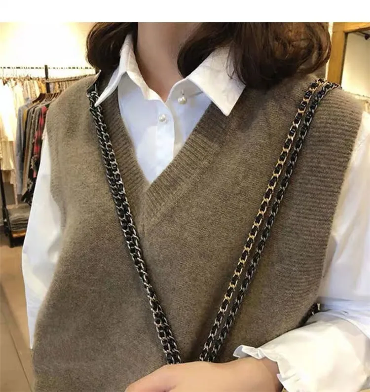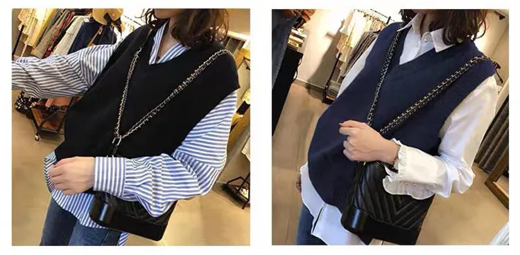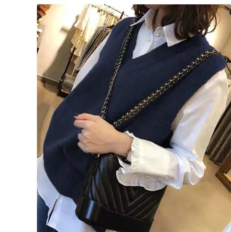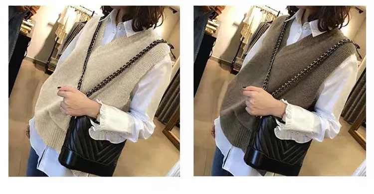 Новинка Весна 2020, женский свободный пуловер с V-образным вырезом, без рукавов, Офисная Женская Повседневная однотонная трикотажная Женская одежда, свитер, жилет D863