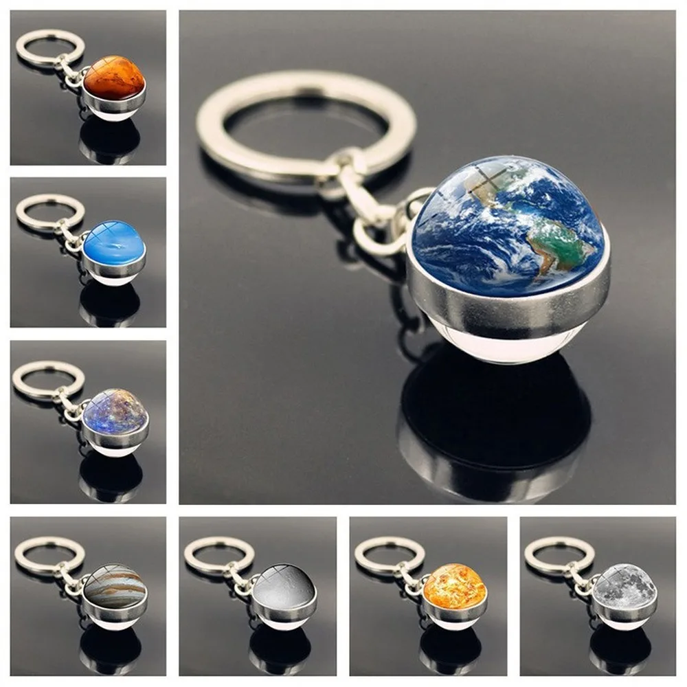 Брелок на солнечной системе кольцо для ключей с планетой Nebula Space Universe Earth Sun Jupiter Saturn, двухсторонний стеклянный шар