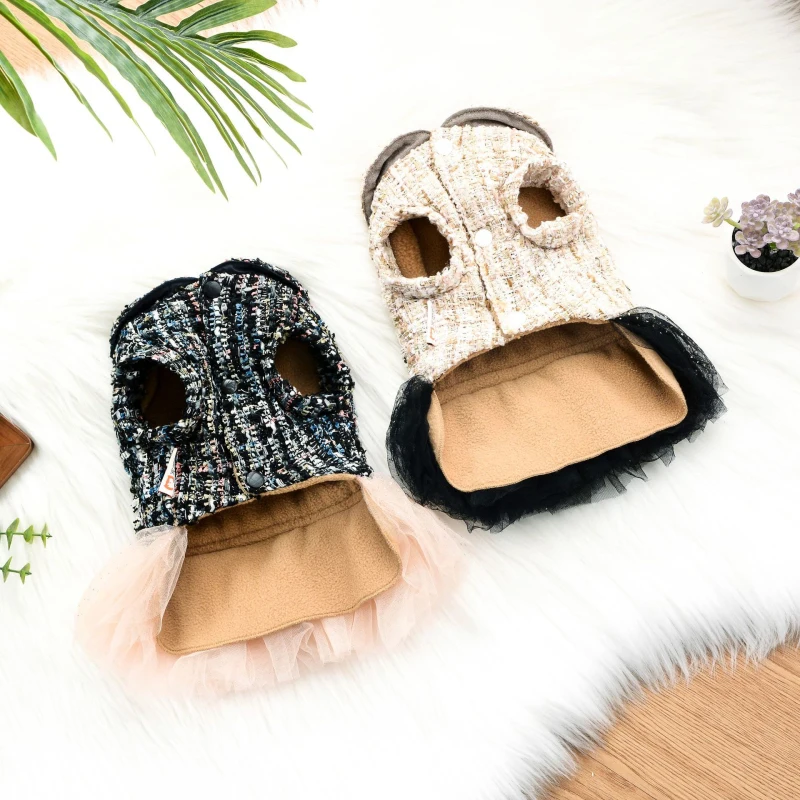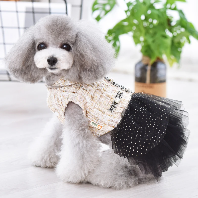 Женская зимняя одежда для собак, милый кружевной жемчужный женский костюм кошки, пуделя, бишона, померанского шнауцера, собаки