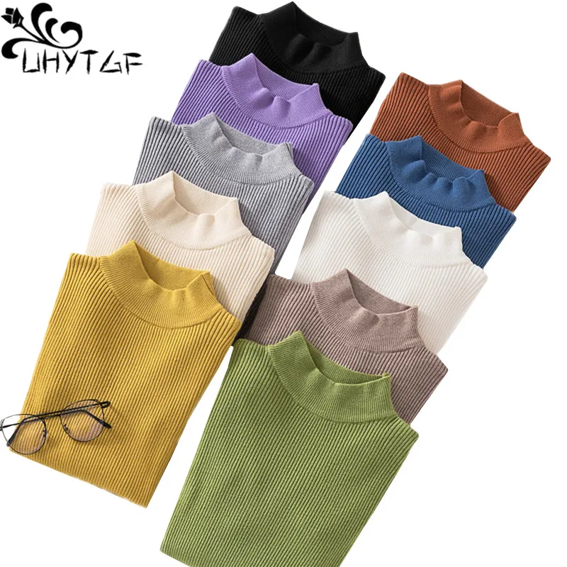 Женский свитер с длинным рукавом UHYTGF, осенне-зимний вязаный облегающий свитер, пуловер, теплые Стрейчевые короткие свитера для женщин 651