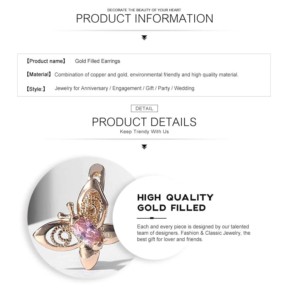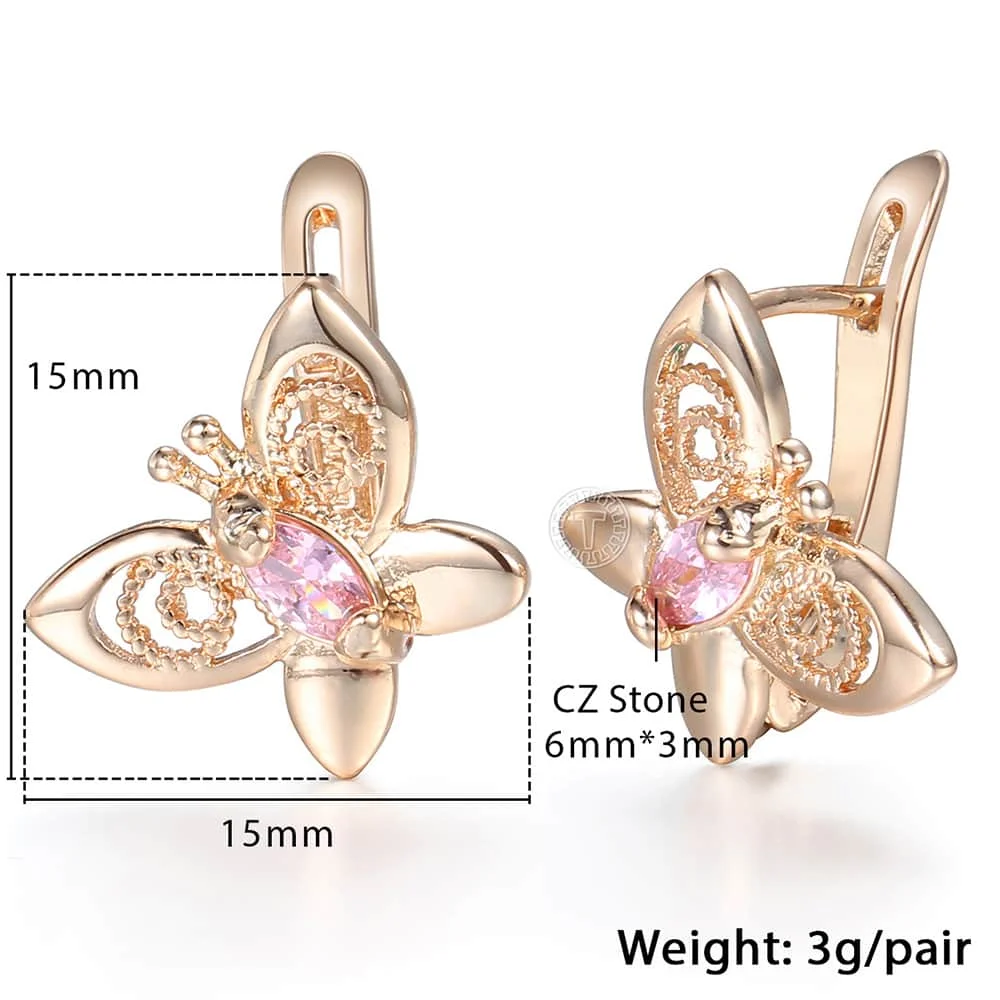 Женские серьги-Бабочки С Розовыми Фианитами, с застежкой из розового золота, GE67A, овал, куб, цирконий
