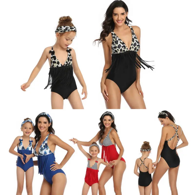 Купальник цельный женский, с кисточками, для мамы и девочки, лето 2020
