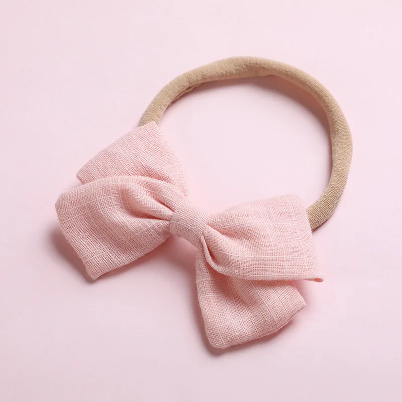Льняная головная повязка для девочек, хлопок, нейлоновая повязка для волос, мягкая эластичная повязка на голову для новорожденных, реквизит для фотосъемки