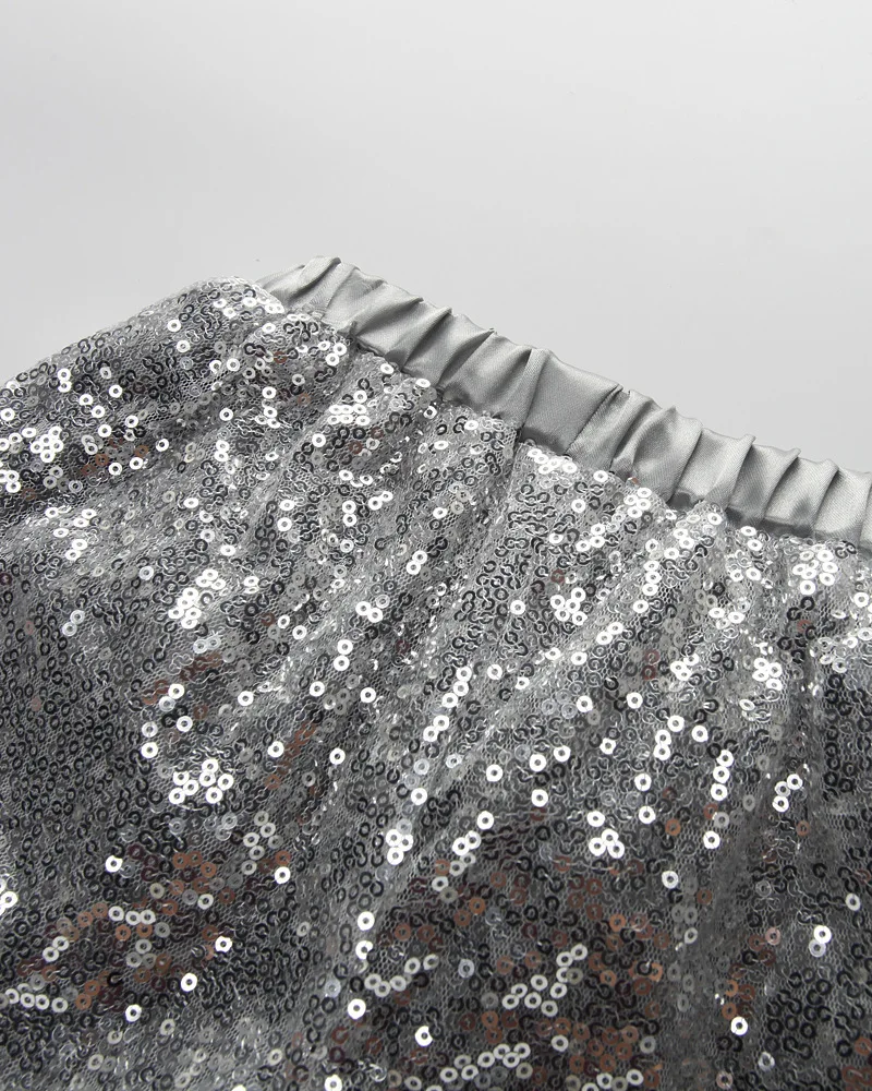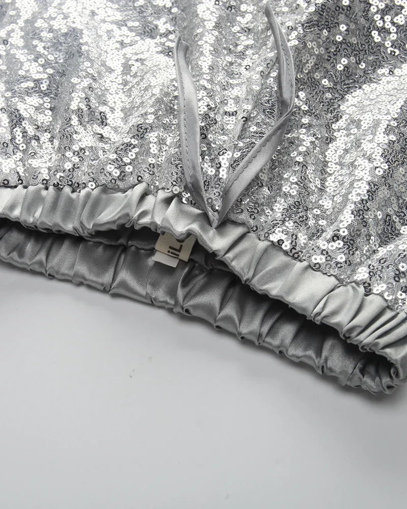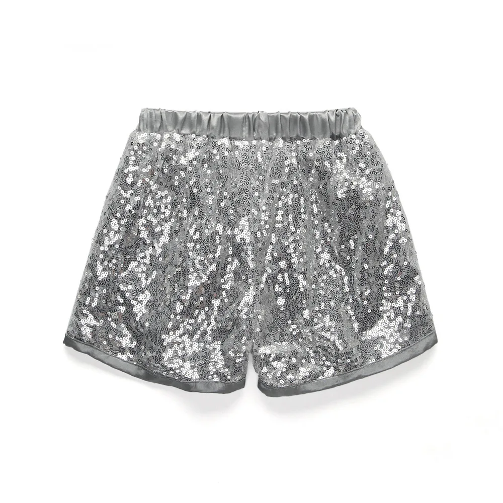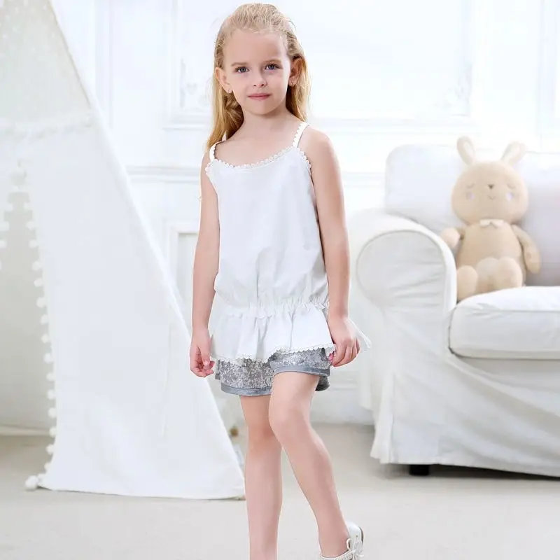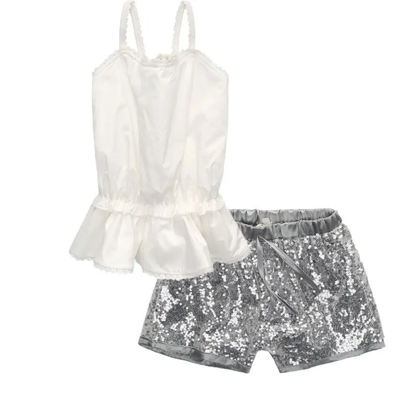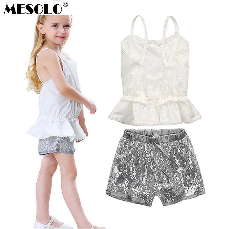 Комплект из 2 предметов для девочек, кружевной топ с открытой спиной, шорты с блестками
