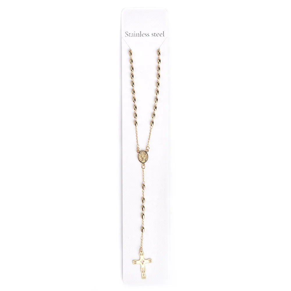 Женское золотое католическое ожерелье из нержавеющей стали с четками овальные бусины крест четки