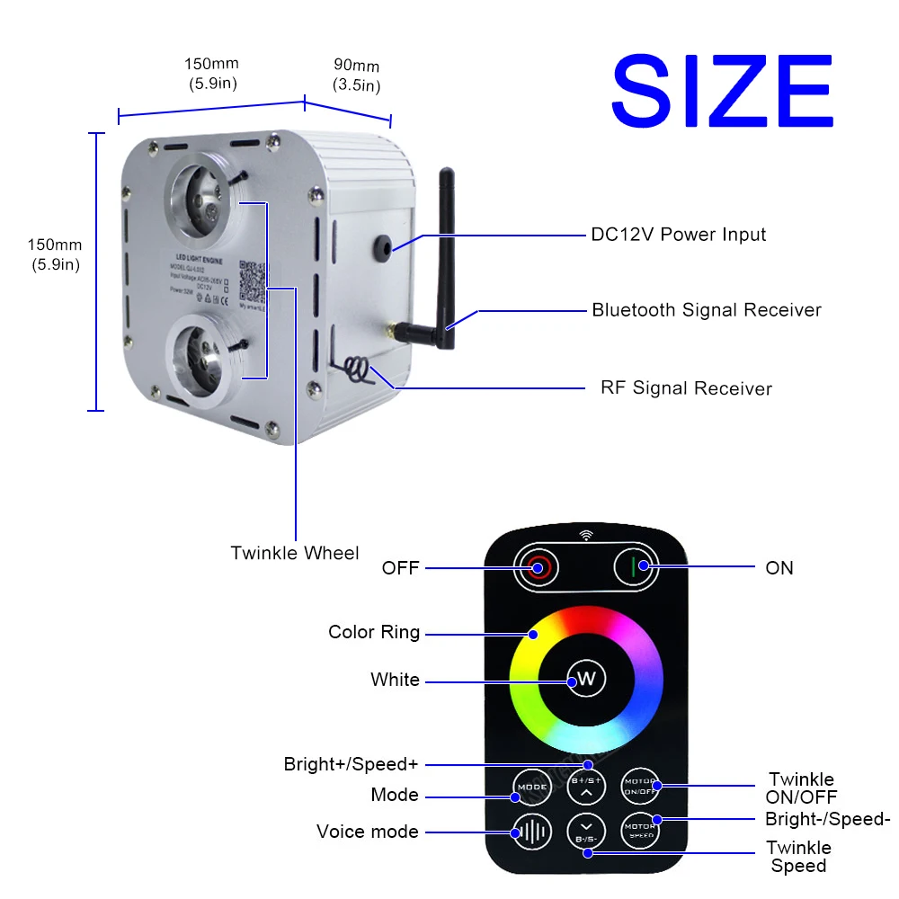 Набор из оптоволоконного светильника Twinkle 32 Вт RGBW, смешанный ...