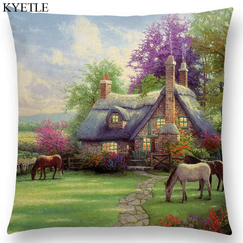 Декоративный чехол для подушки с изображением леса рек сельской местности сада пейзажа картины маслом сказки маяков