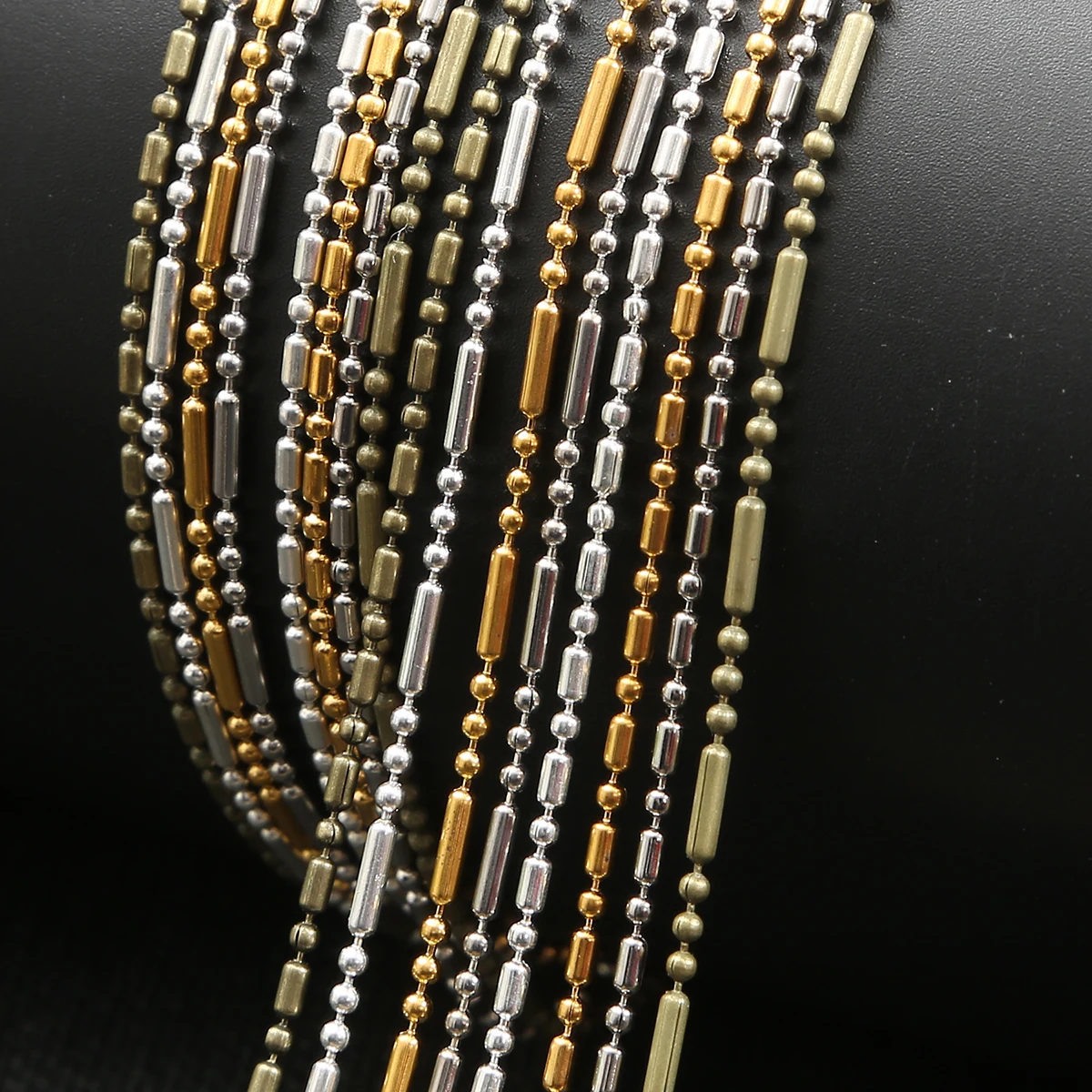 Цепочка из железного бамбуковый шар с бусинами для женщин, ожерелье разных цветов, изящная цепочка для ключей, аксессуар для ювелирных изделий, 1,5 мм