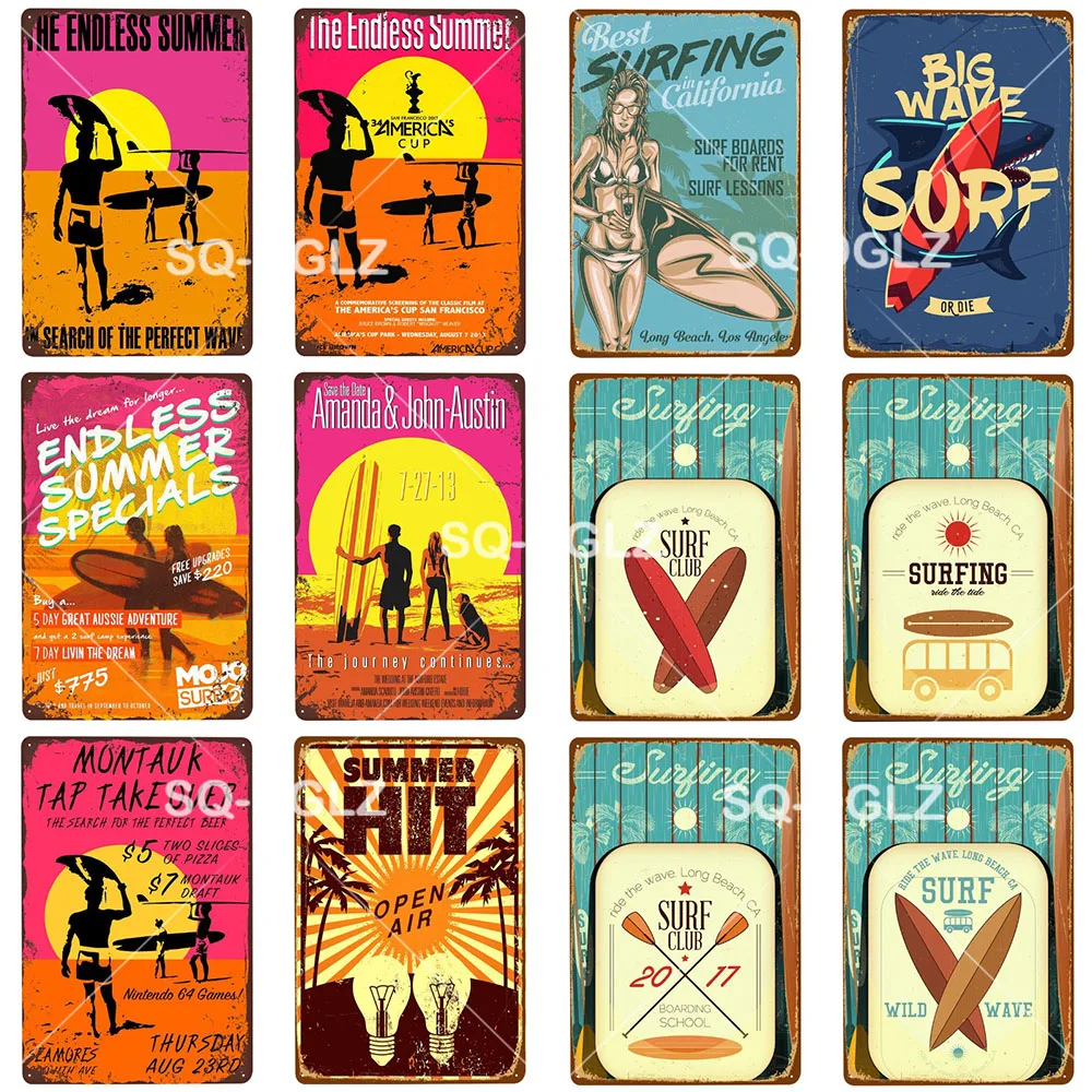 Пляжные металлический знак доска Металл Винтаж пивной бар декор для гаражный знак пластина для серфинга Декор для дома искусства Настенная живопись Стикеры