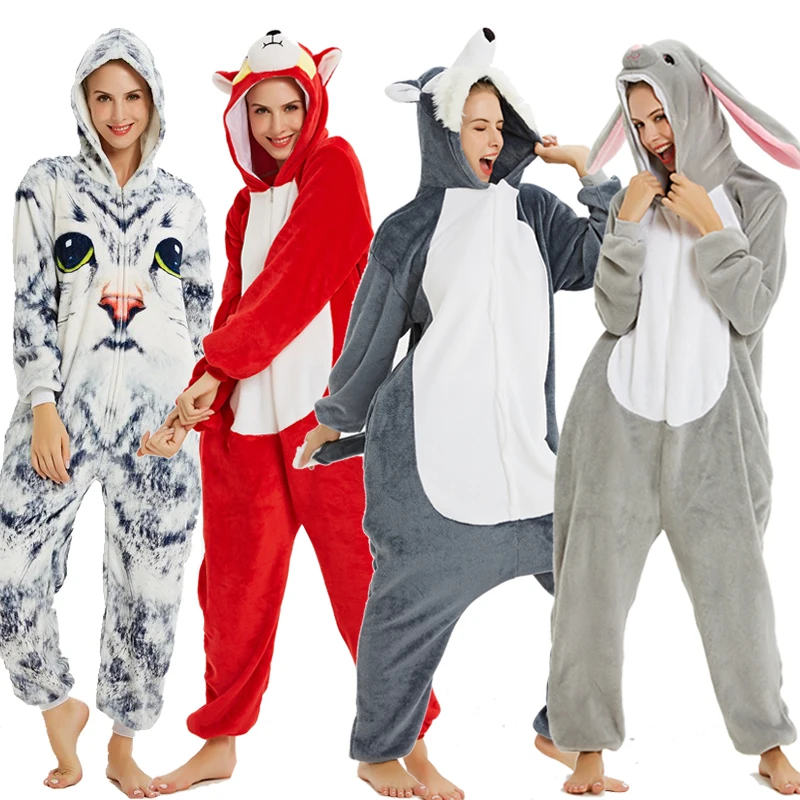 Пижама кигуруми женская зимняя, кигуруми в виде животных, единорога, кошки, панды, единорога, комбинезон для сна