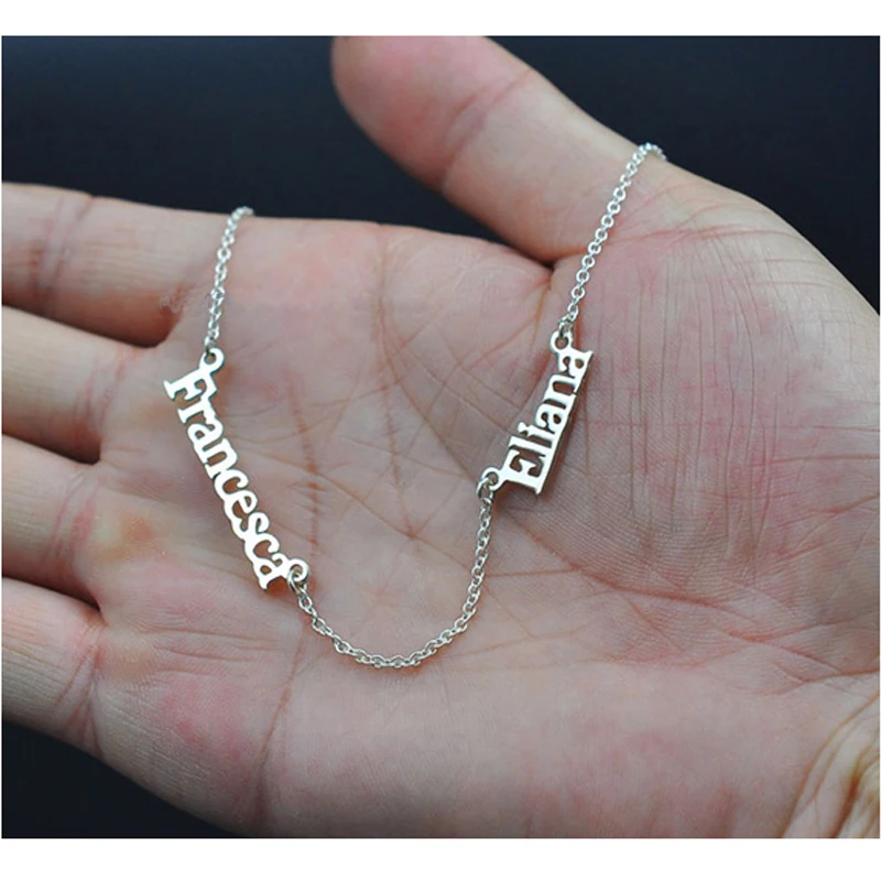 Индивидуальное оригинальное ожерелье из стерлингового серебра 925 пробы, две цепочки с кулонами с именами, подвески, подарок на день рождения ручной работы