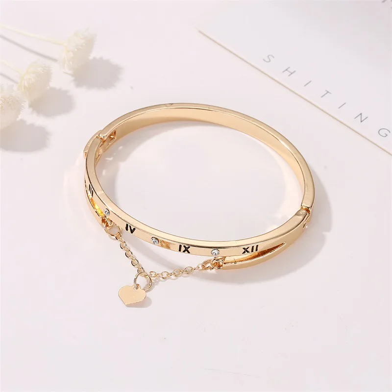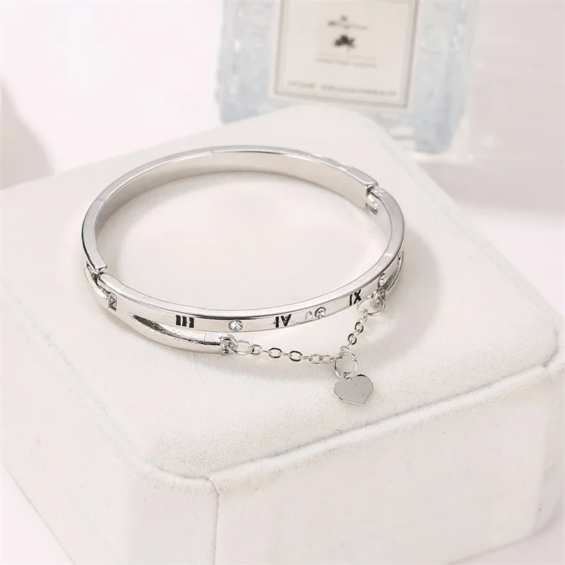 Женские браслеты с римскими цифрами Woozu, Роскошные браслеты с подвесками в форме сердца Forever Love, брендовые ювелирные украшения для женщин