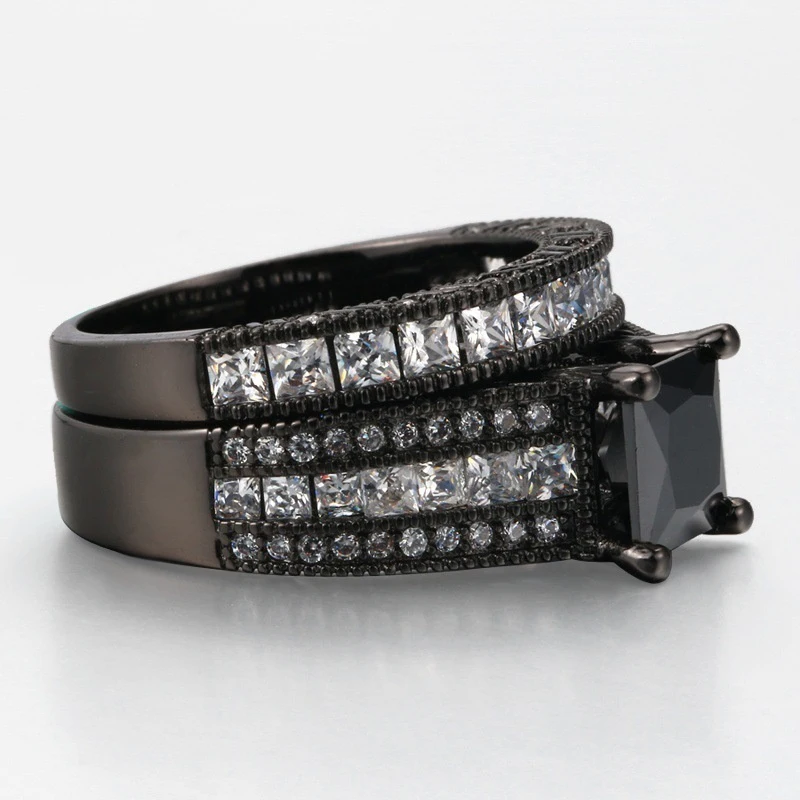 Модные парные кольца, ювелирные изделия, мужские кольца из нержавеющей стали с чернымбелым цирконом, набор колец, обручальное кольцо, подарок