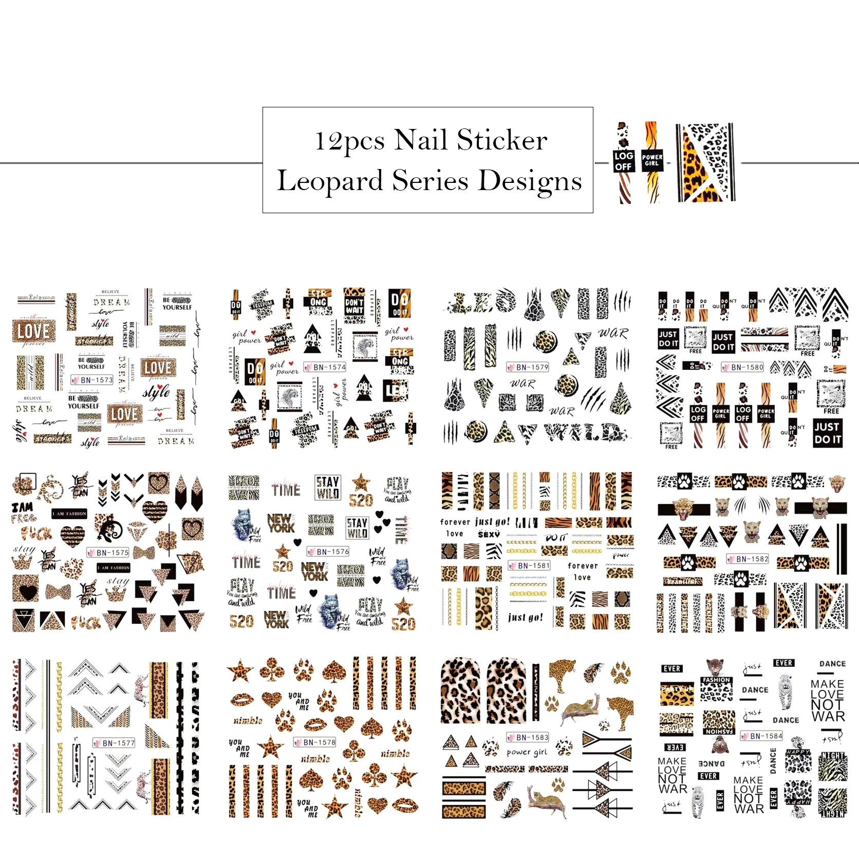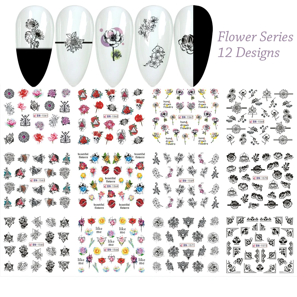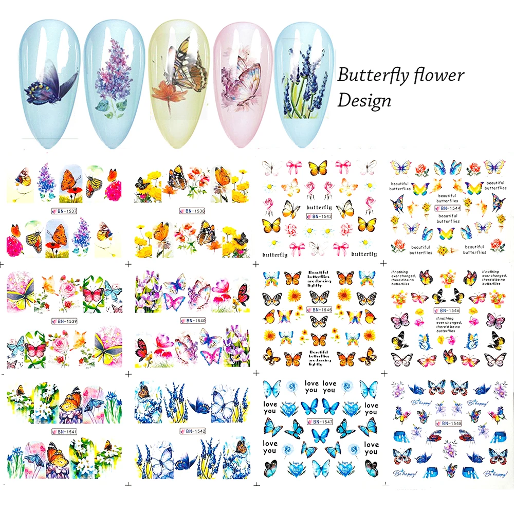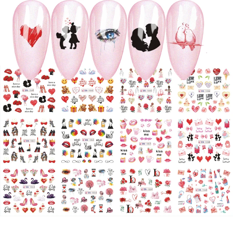Набор стикеров для ногтей, 48 шт., смешанный дизайн, Бабочка, цветок, леопард, наклейки на День святого Валентина, наклейки для татуировки, слайдер для дизайна ногтей, новое поступление