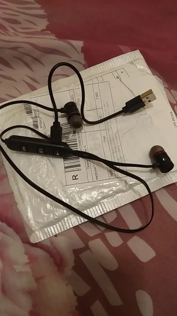 хорошие за свои деньги наушнички .с телефоном сразу связались без проблем .качество звука приемлемое .на сколько заряда хватает х.з. в комплекте наушники и кабель зарядки .пришли в пакете .