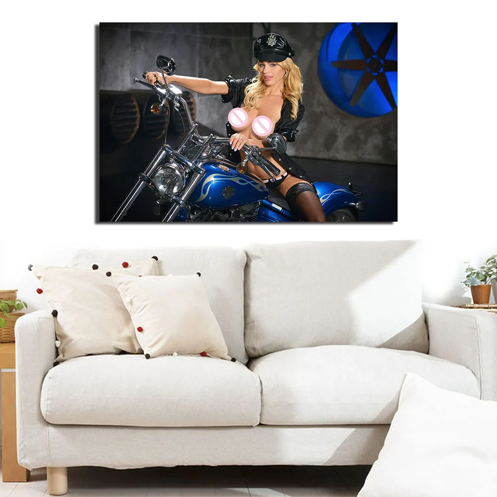 Картина на стену с изображением мотоцикла и сексуальной девушки, постер печать на холсте, для декора гостиной