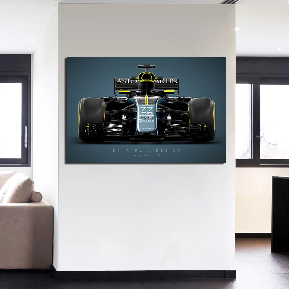 Картина на холсте Aston Martin F1 гоночный автомобиль, постер с рамкой, Настенная картина для домашнего декора