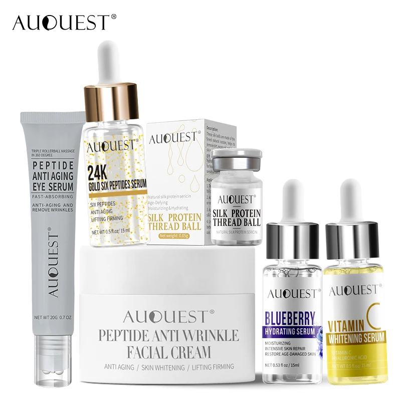 AuQuest наборы для ухода за кожей крем для лица против морщин, сыворотка, крем для глаз, наборы для ухода за кожей, отбеливающий увлажняющий уход за кожей