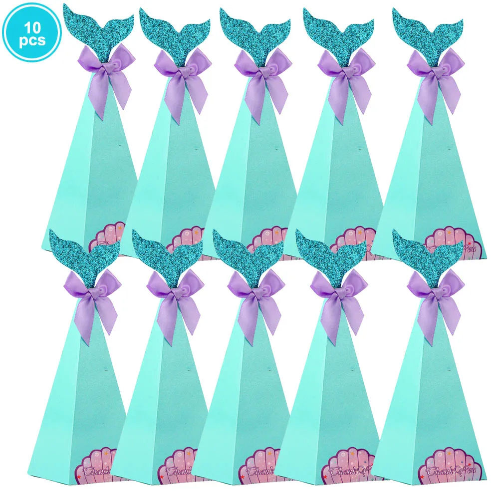 10 шт., бумажная коробка для конфет с хвостом русалки