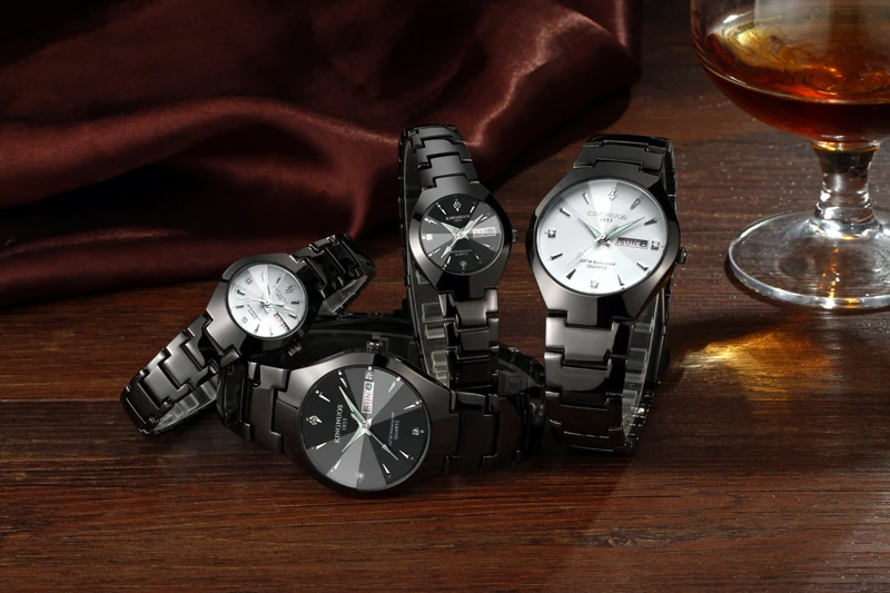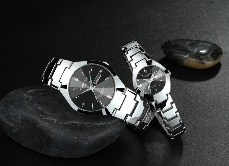 Парные часы, парные мужские и женские кварцевые наручные часы, стальные водонепроницаемые светящиеся часы с указателем днядаты, двойной календарь, модные парные часы
