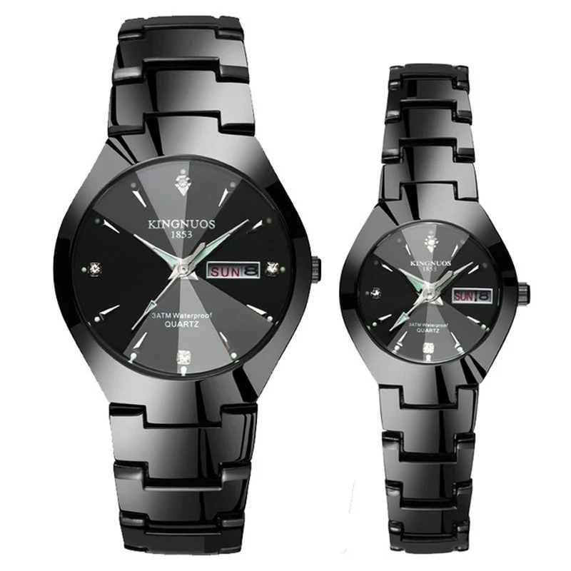 Парные часы, парные мужские и женские кварцевые наручные часы, стальные водонепроницаемые светящиеся часы с указателем дня/даты, двойным календарем, модные парные часы