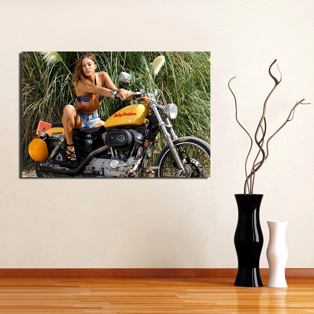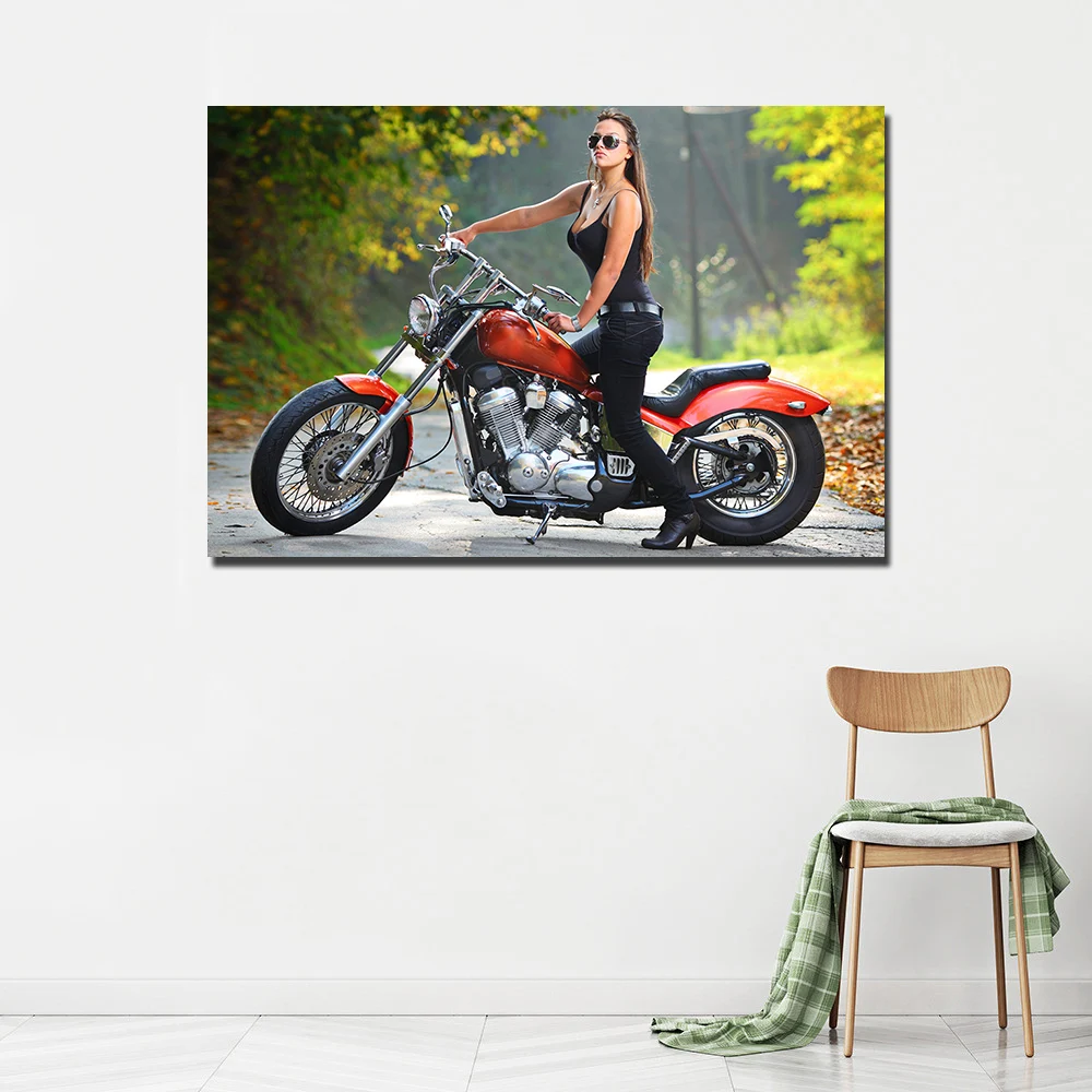 Картина на холсте с изображением сексуальной девушки и супер мотоцикла, настенные картины для гостиной, домашний декор, плакат