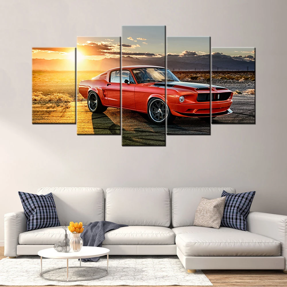 5 шт., настенные картины Ford Mustang Fastback Supercar, HD печатные плакаты, модульные картины для декора гостиной