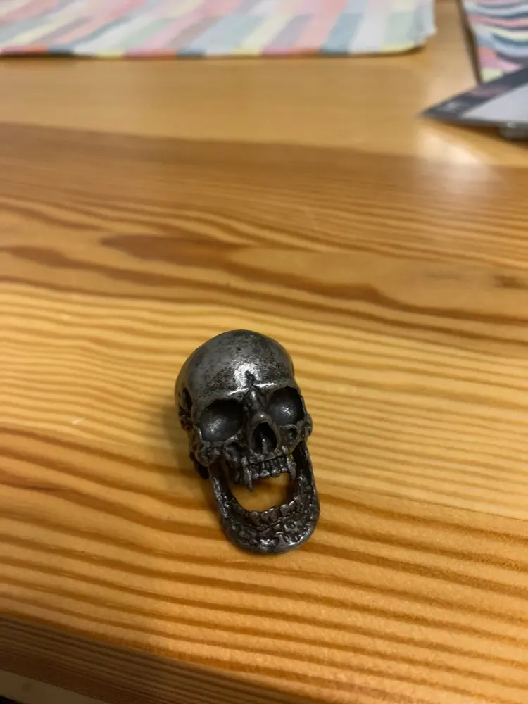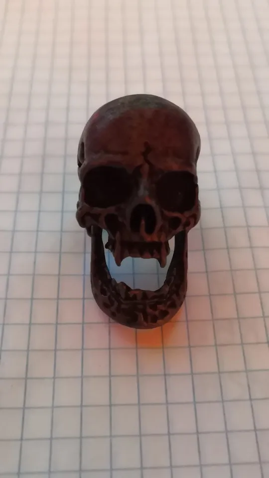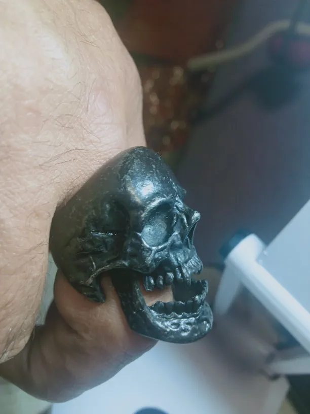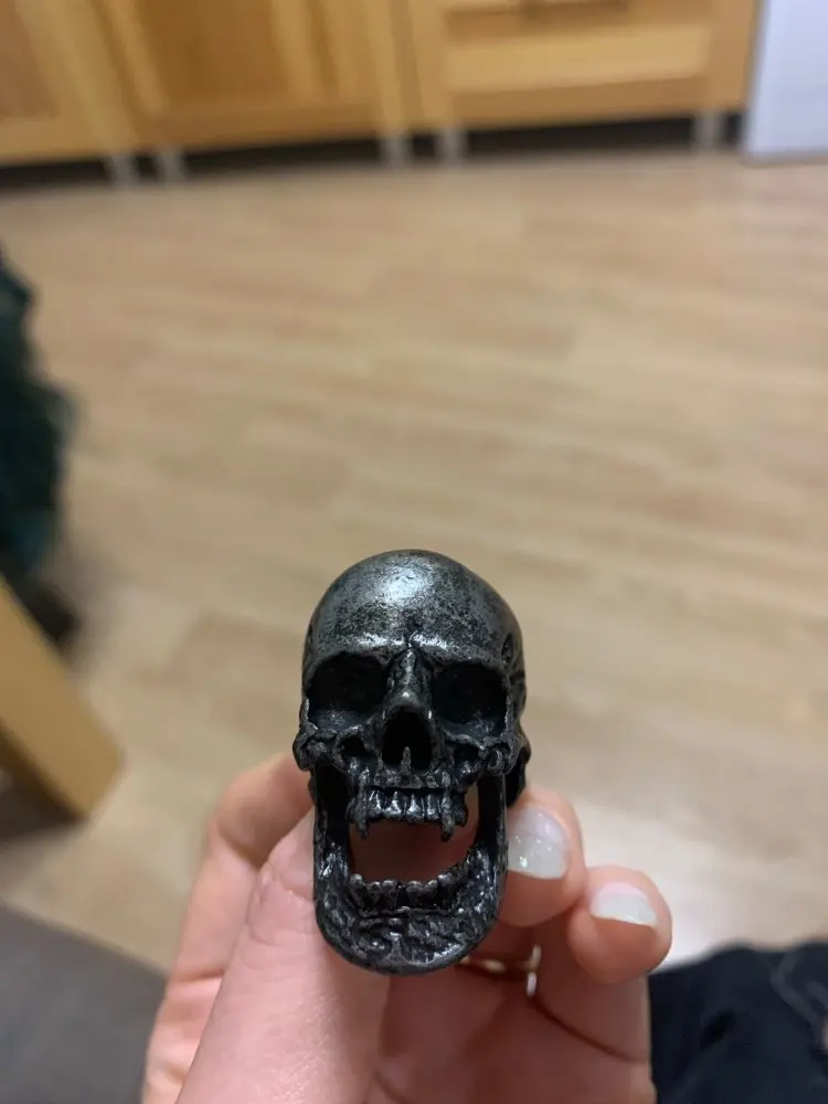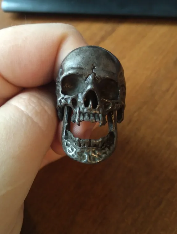 Хорошее кольцо, но оно ОГРОМНОЕ! Около 4 см в длину. Совет производителю: снимите нижнюю челюсть, будет лучше. Сам же так и сделаю.